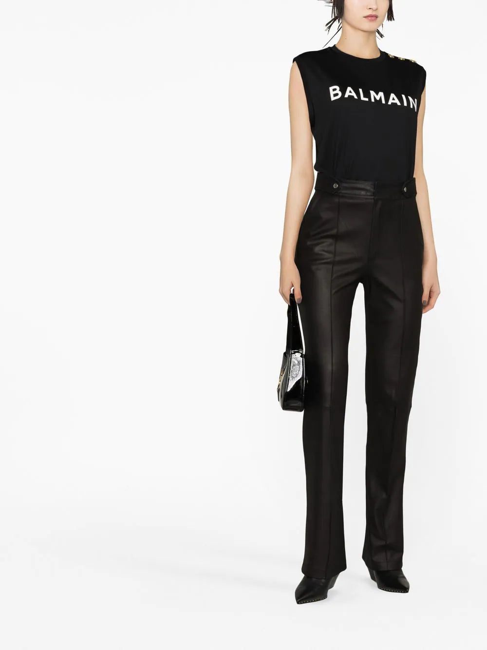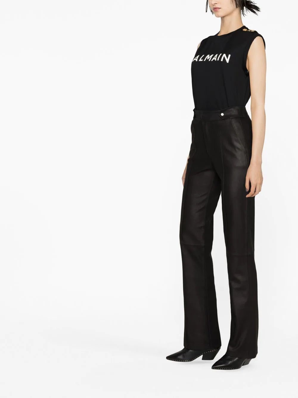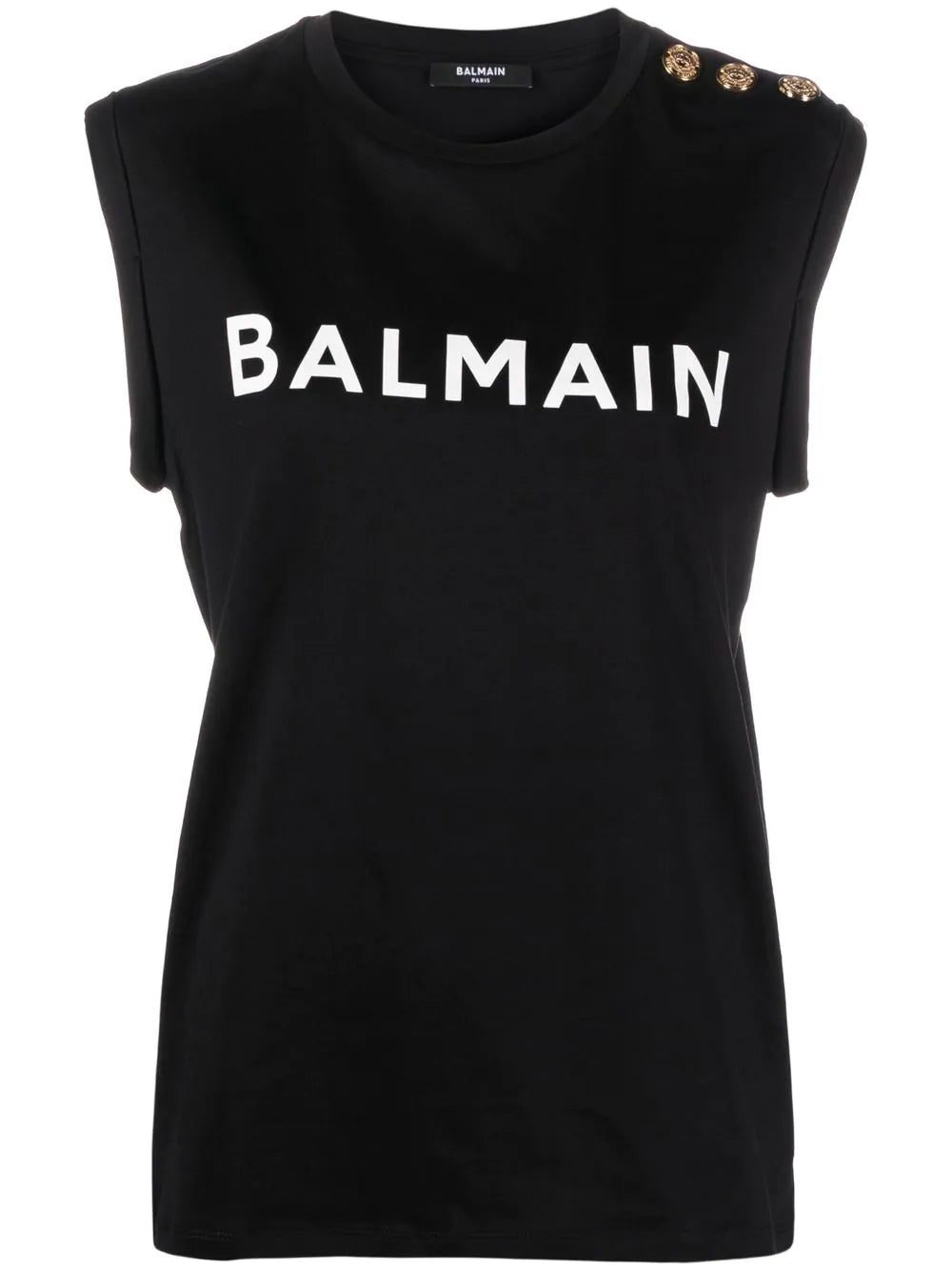 Balmain's signature sense of opulence is continued into casualwear garments such as this sleeveless top from the SS23 collection. This is highlighted through the use of gold-tone button detailing at the shoulder.