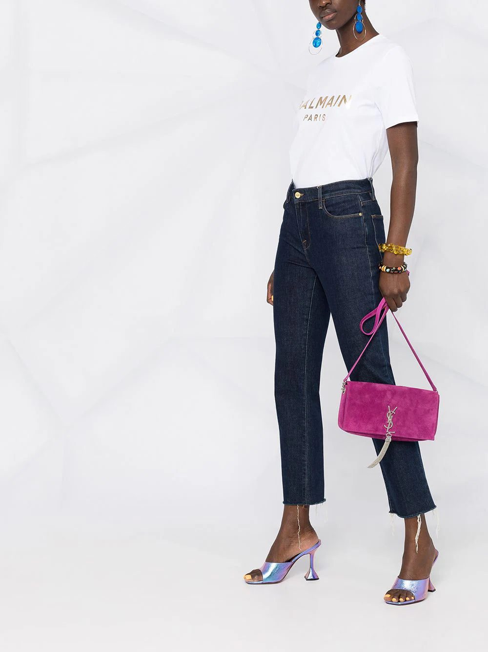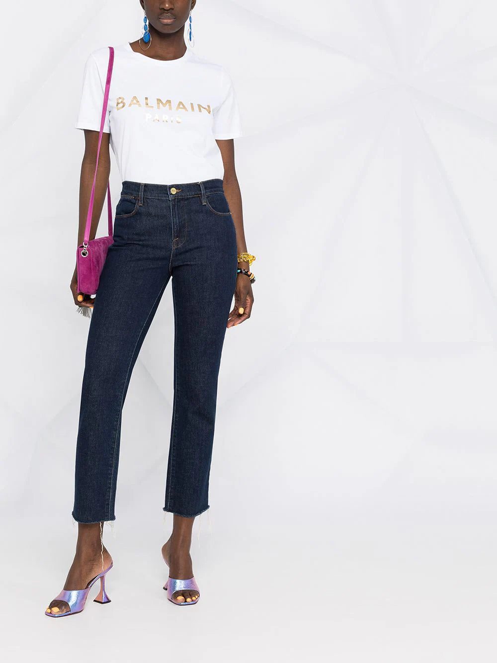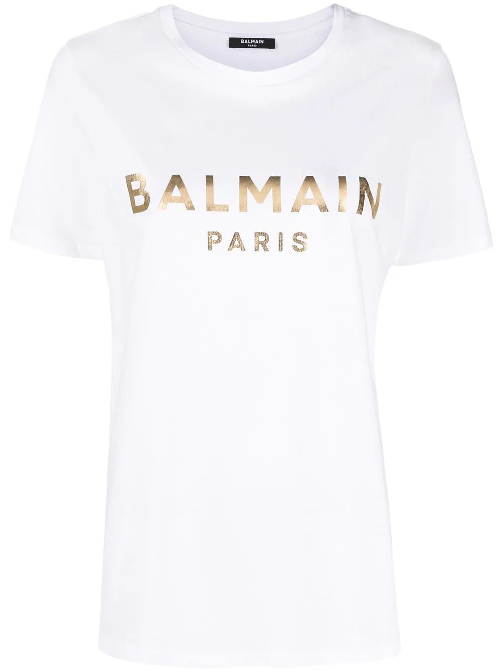 Your look says it all. This white cotton T-shirt lets it be known that you have great taste in fashion with a bold rose-gold Balmain logo emblazoned across the chest. This French fashion house look speaks volumes on your style.