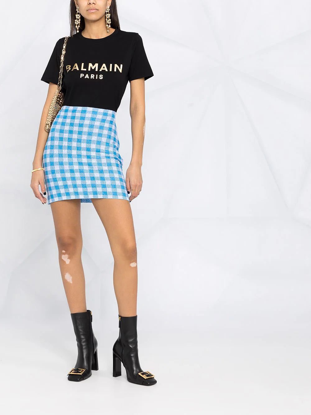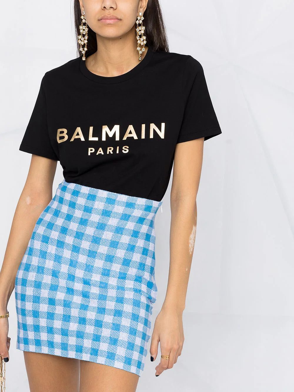 Your look says it all. This black cotton T-shirt lets it be known that you have great taste in fashion with a bold gold Balmain logo emblazoned across the chest. This French fashion house look speaks volumes on your style.