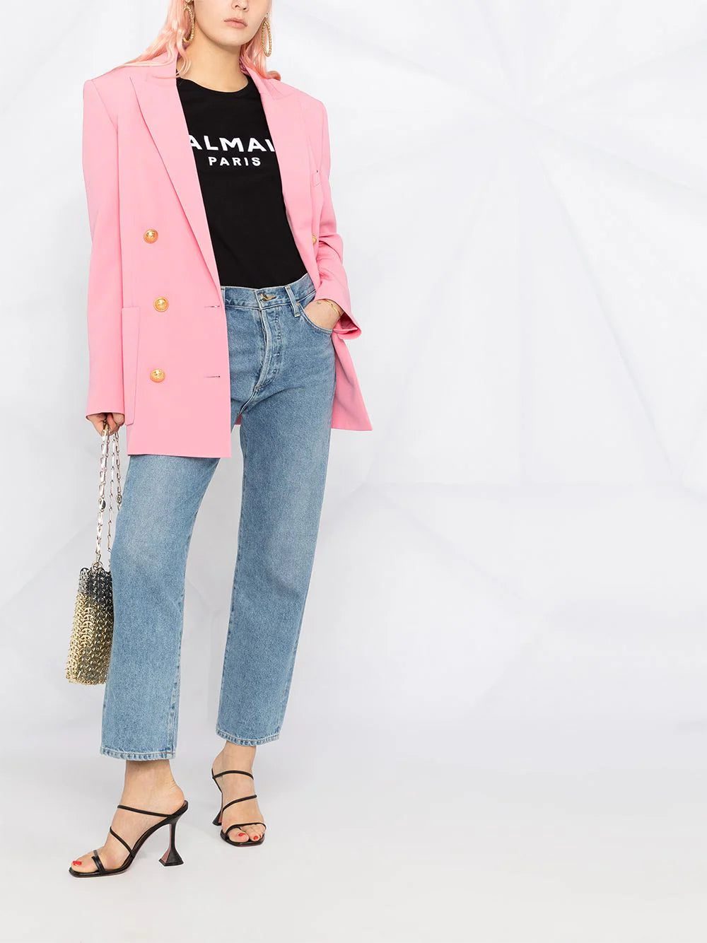 Logomania fans rejoice! As well as being punctuated with the brand's signature across the front, Balmain's T-shirt is decorated with its iconic engraved buttons. Two birds, one stone.