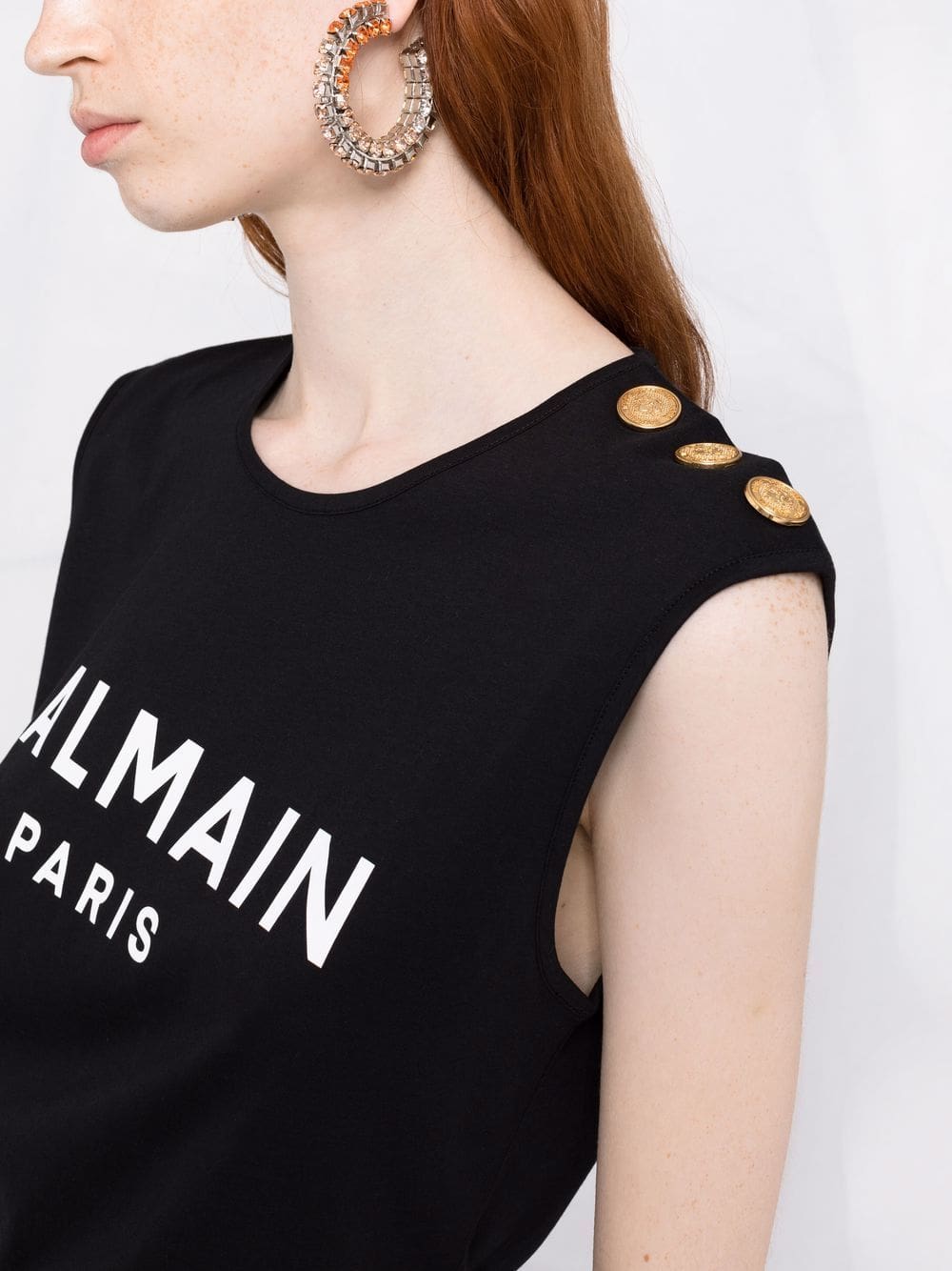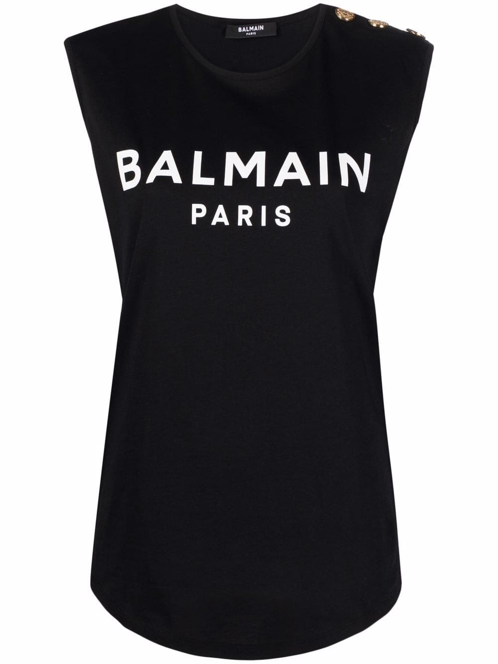 This tank top from Balmain brings together key elements synonymous with the label. Cut from cotton, this piece boasts signature logo lettering and gold-tone buttons at the shoulder.