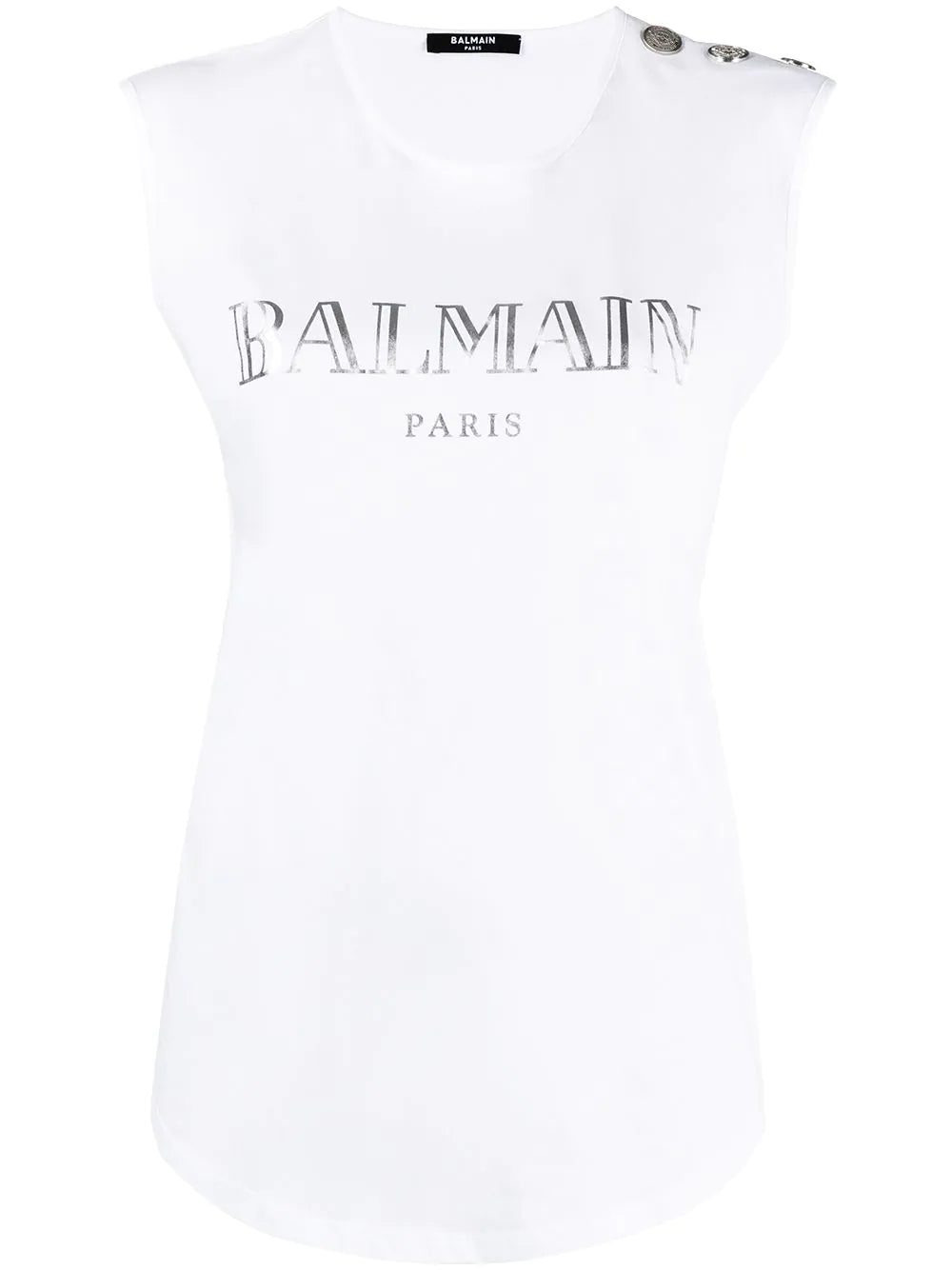Let your shirt do the talking. Finished with a bold logo print across the chest, this cotton vest from Balmain is all your wardrobe needs. Say it loud.