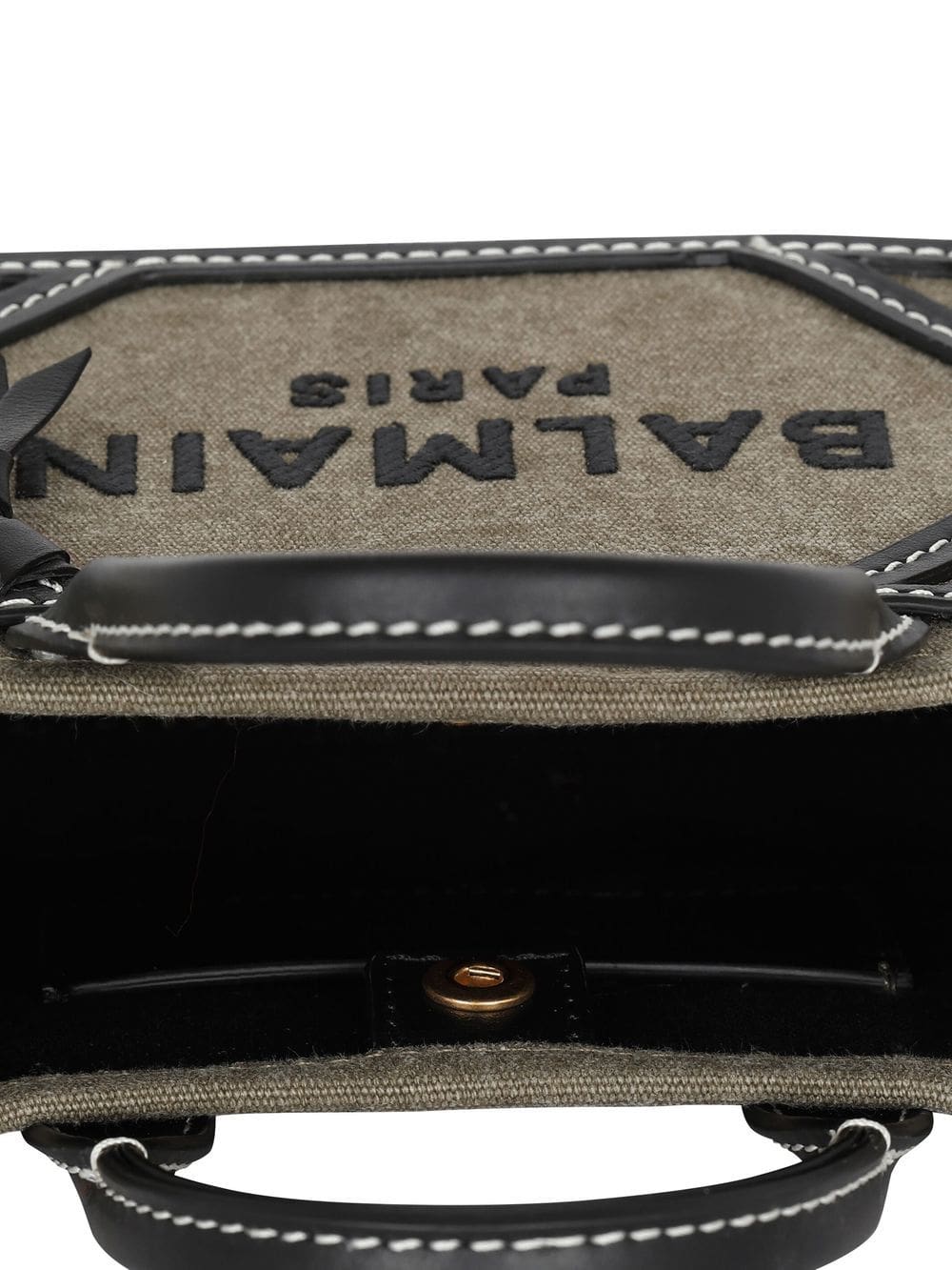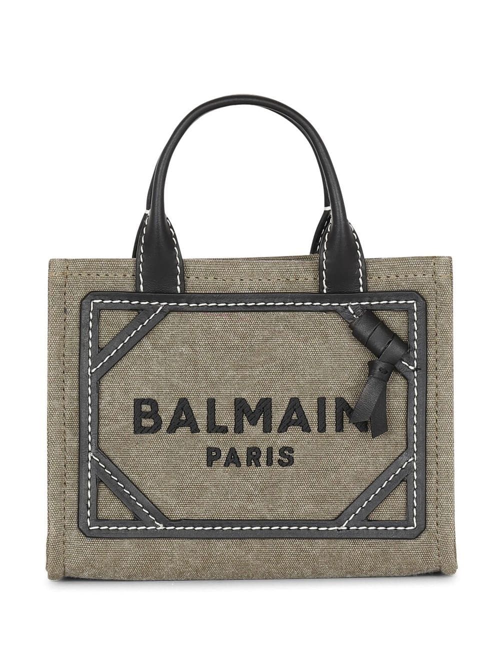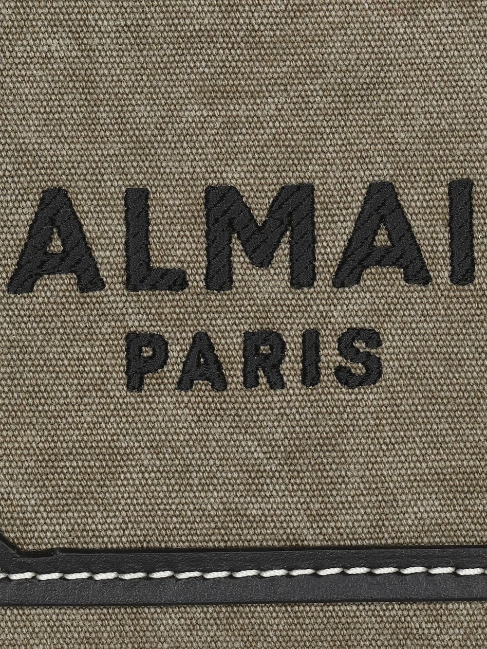 Inspired by the brand's military history, Balmain's B-Army tote bag is updated in a khaki hue. This canvas iteration is embellished with an embroidered logo on the front and multiple leather inserts.