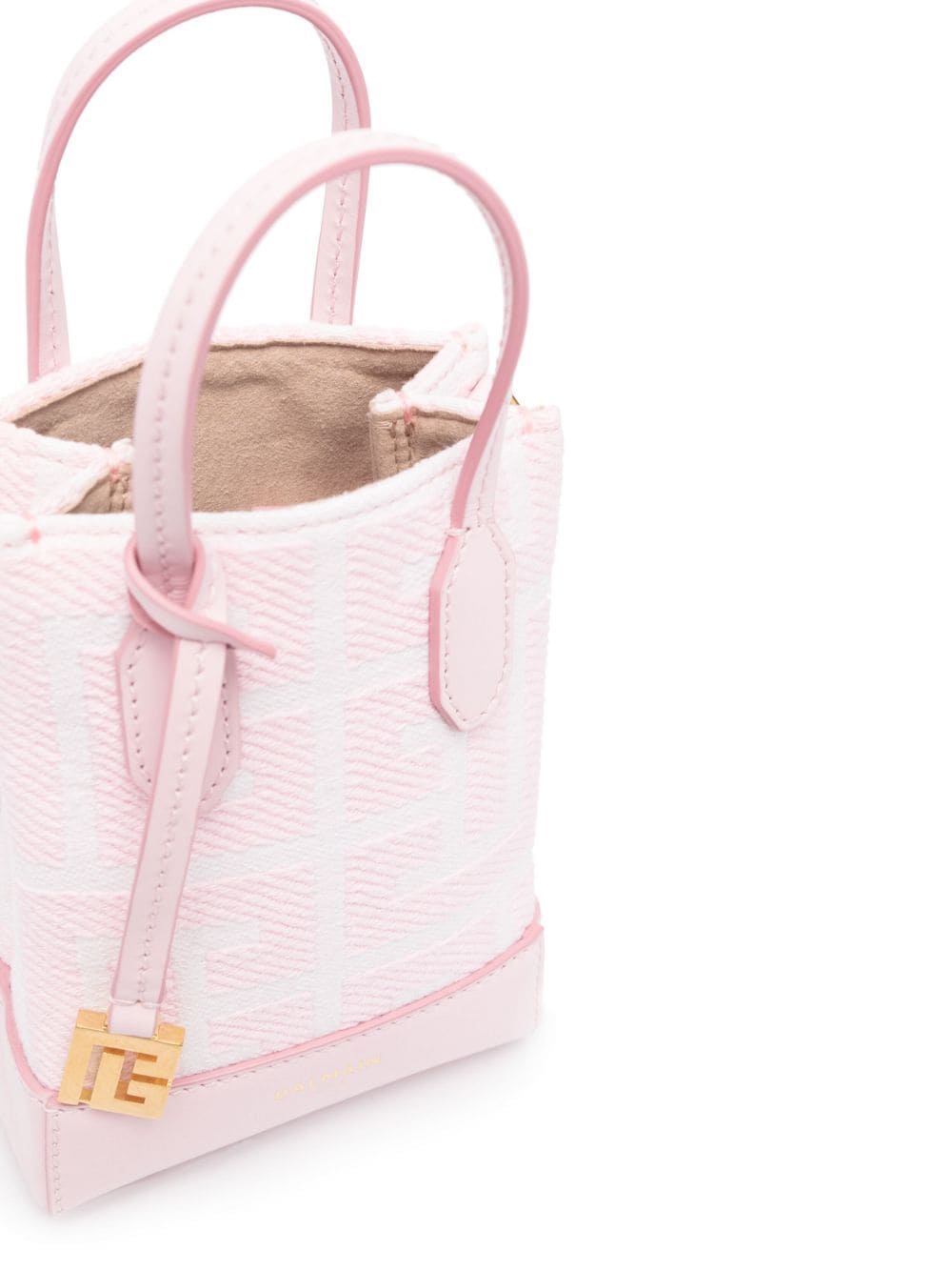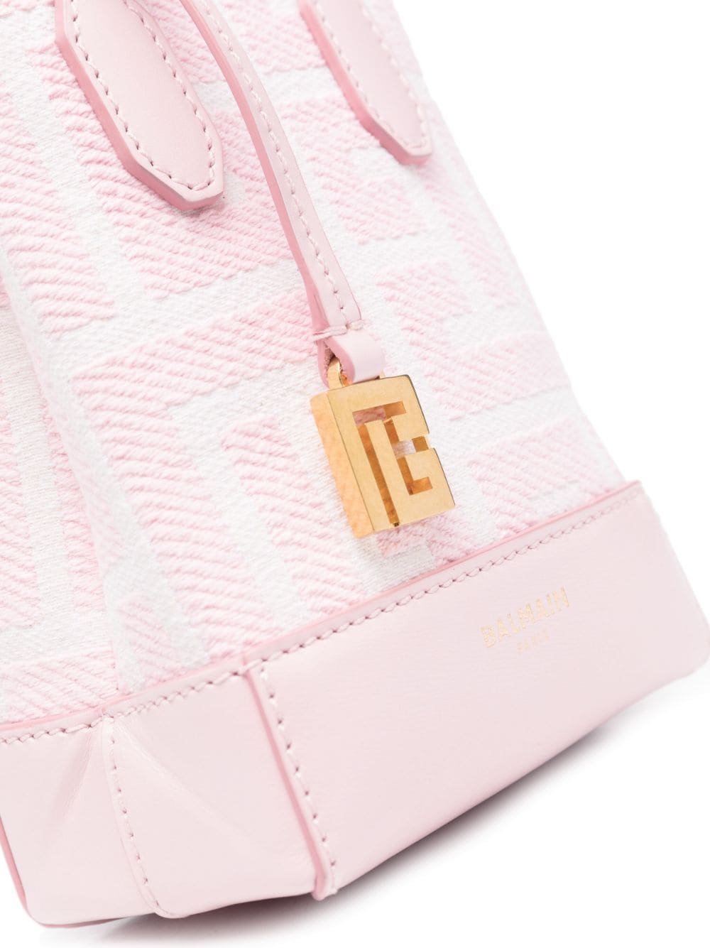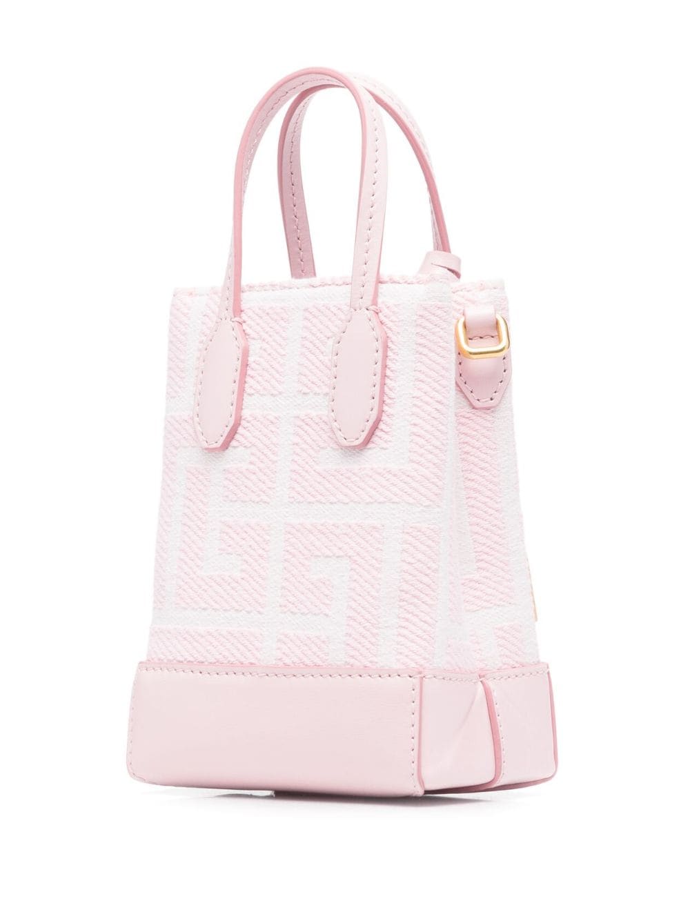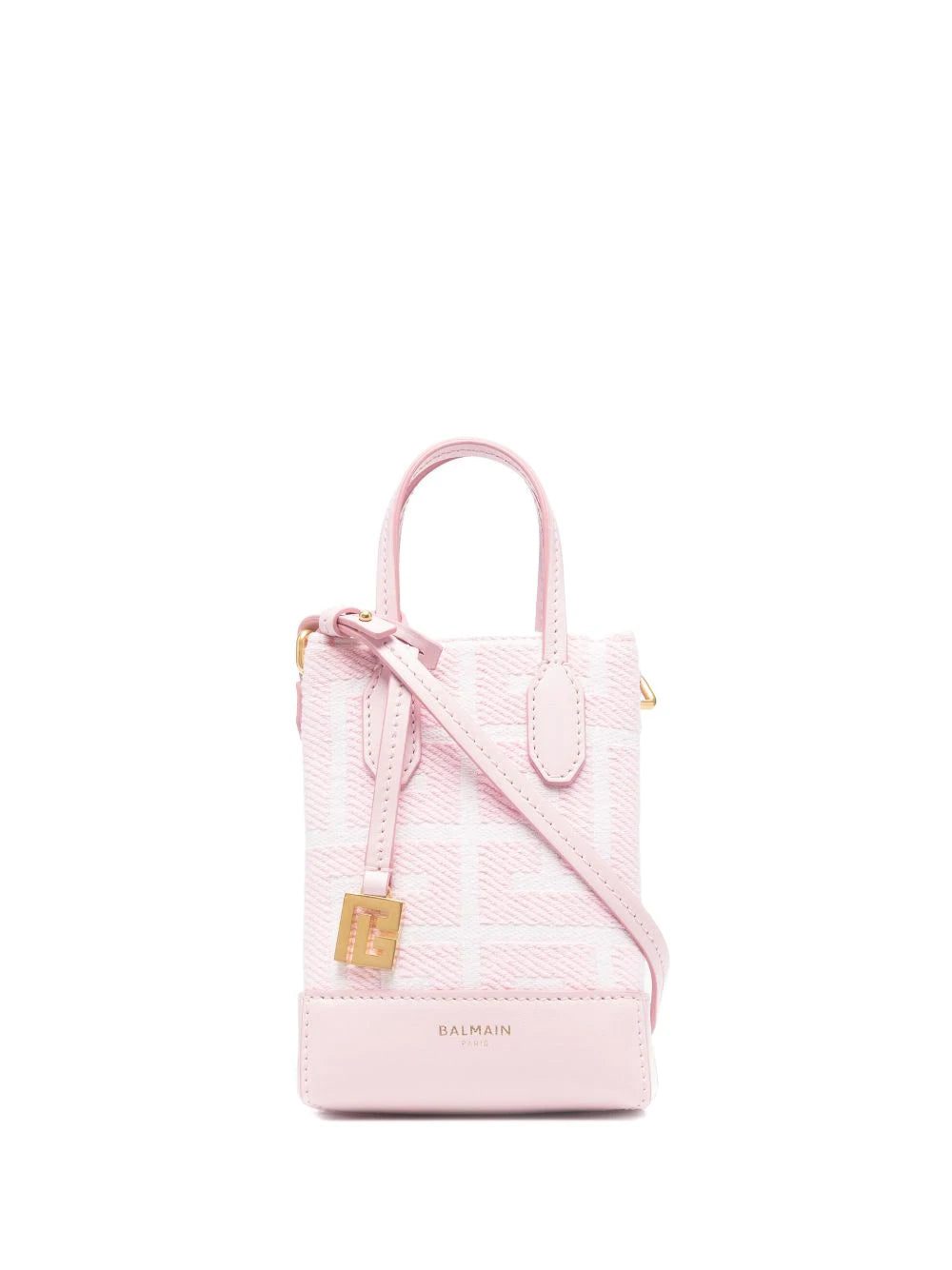 Presented in a compact size, Balmain's monogram jacquard shopping bag celebrates the label's maze-like insignia. Crafted from blush pink leather, it features complementary gold-tone hardware with a logo-charm detail.