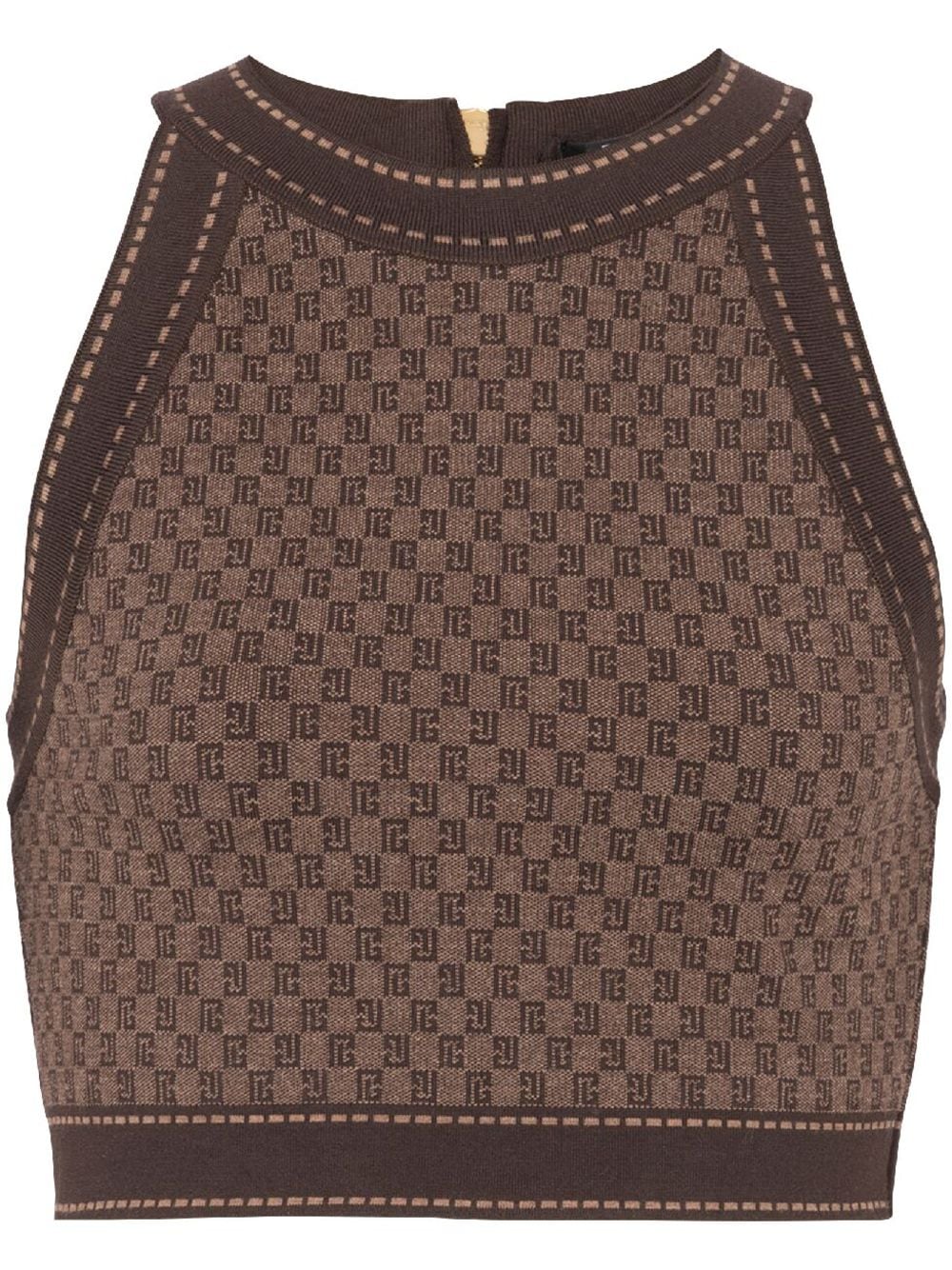 Decorated throughout with a repeated monogram pattern this cropped top exudes French elegance. It features a zip closure at the back for practicality.