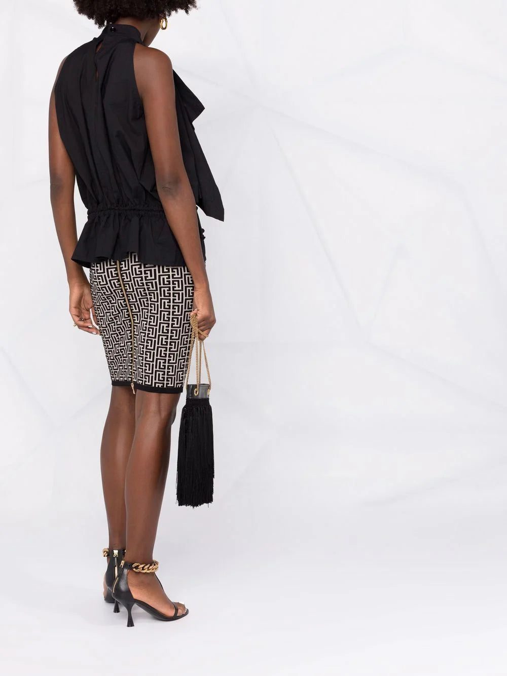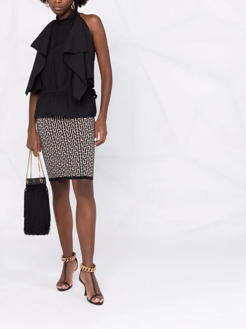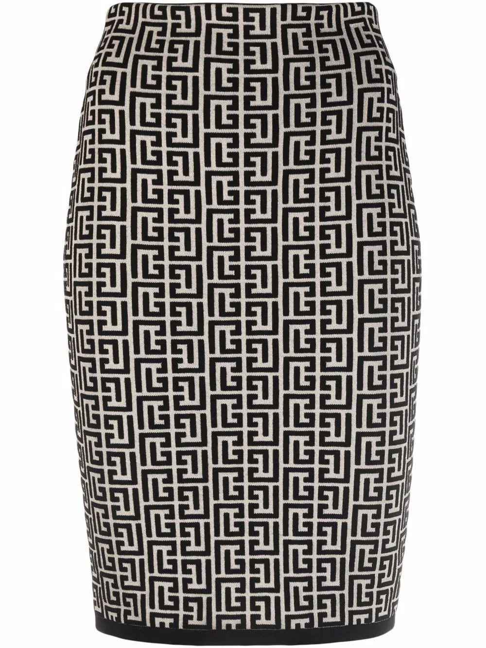 GFE IVOIRE / NOIR GFE monogram jacquard skirt from Balmain.
