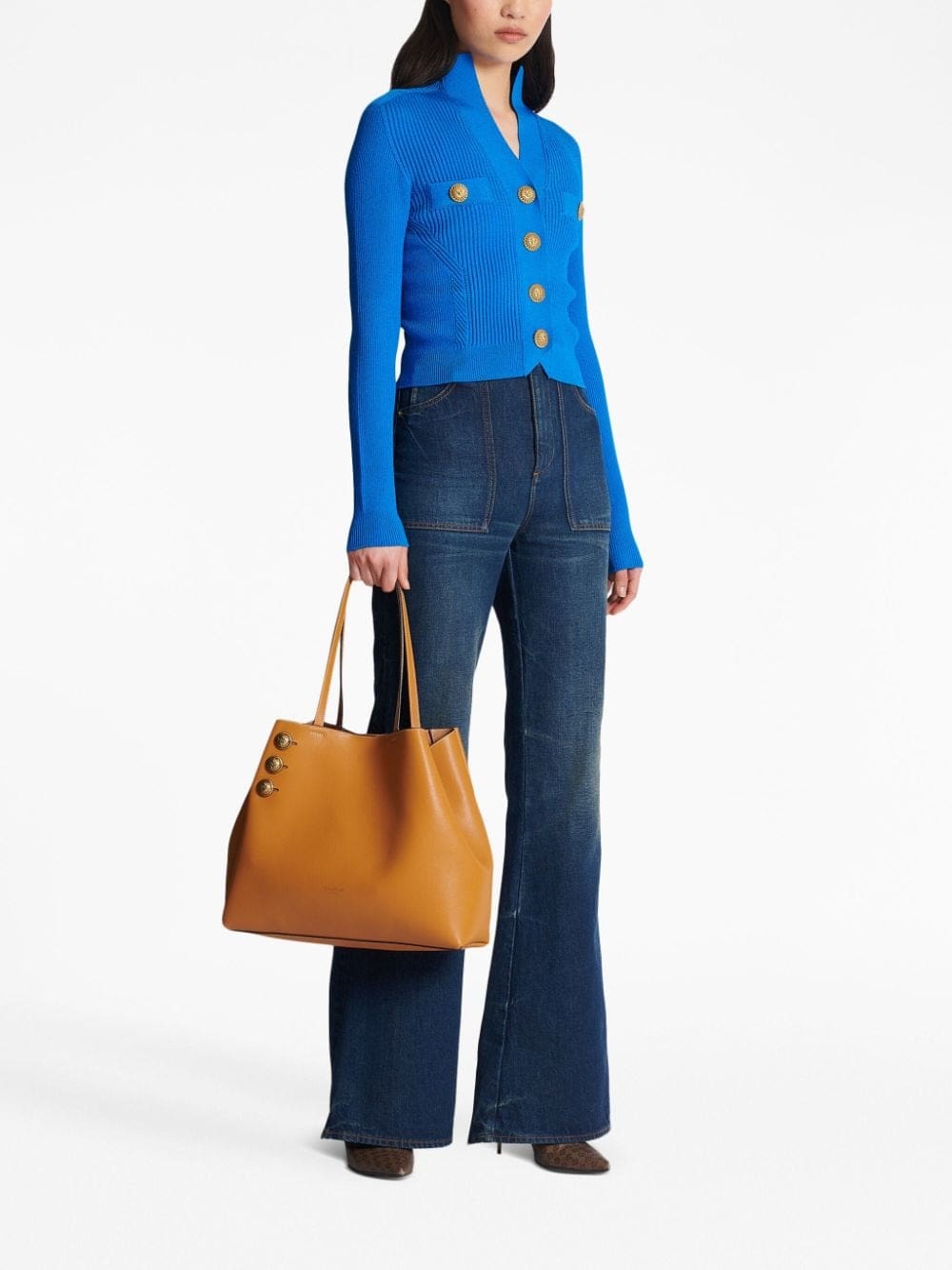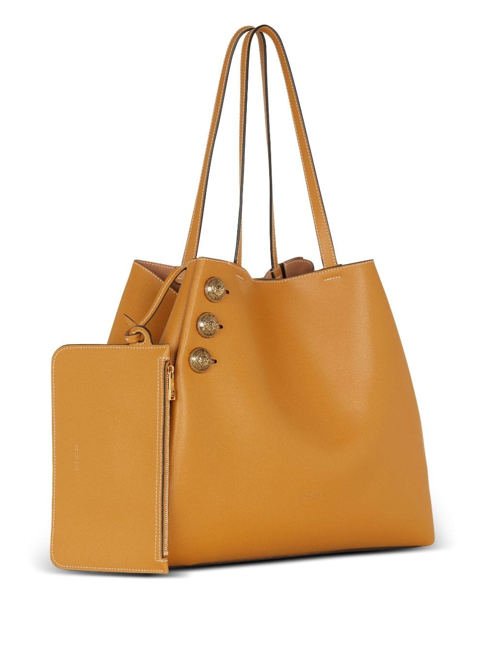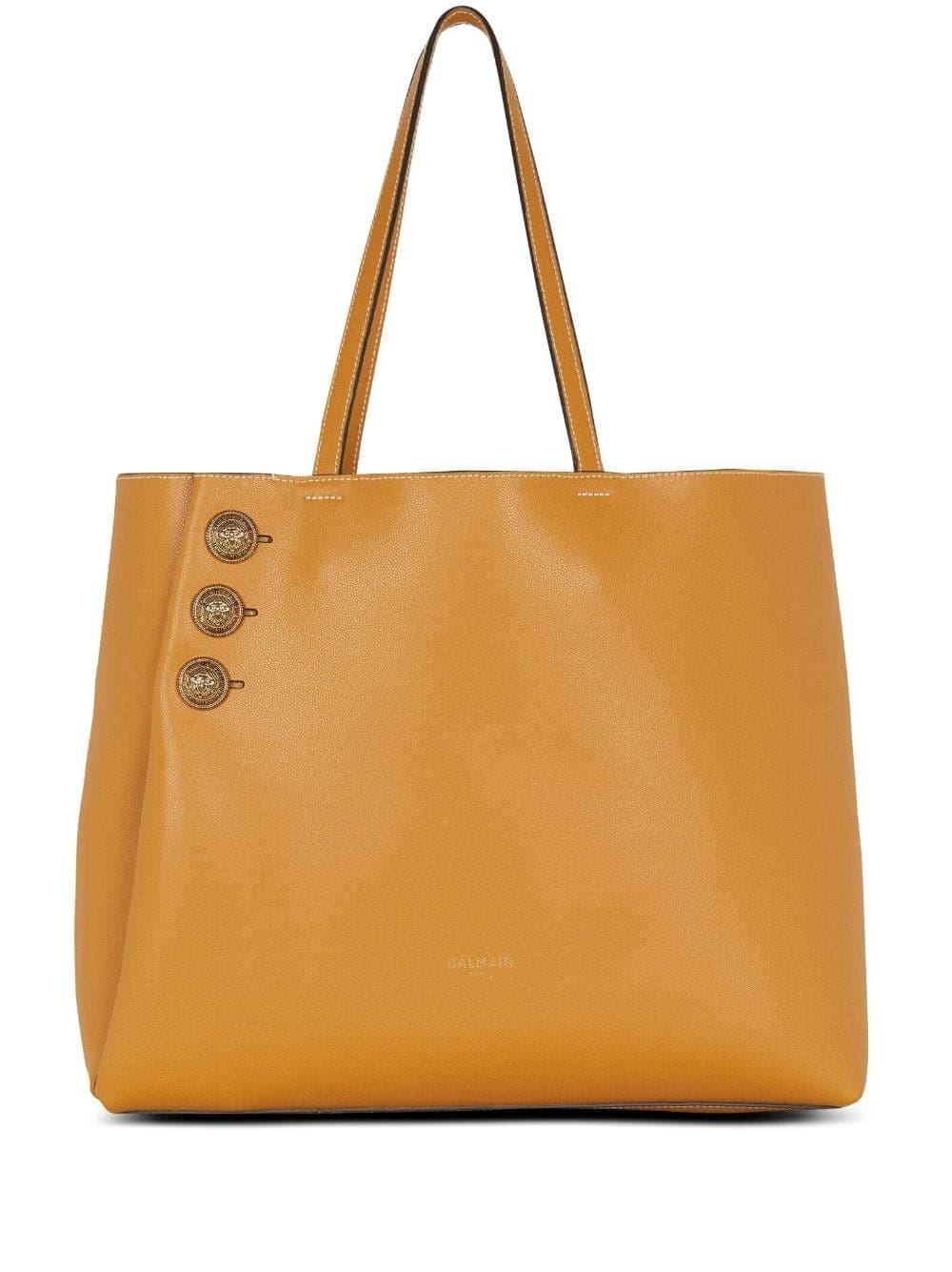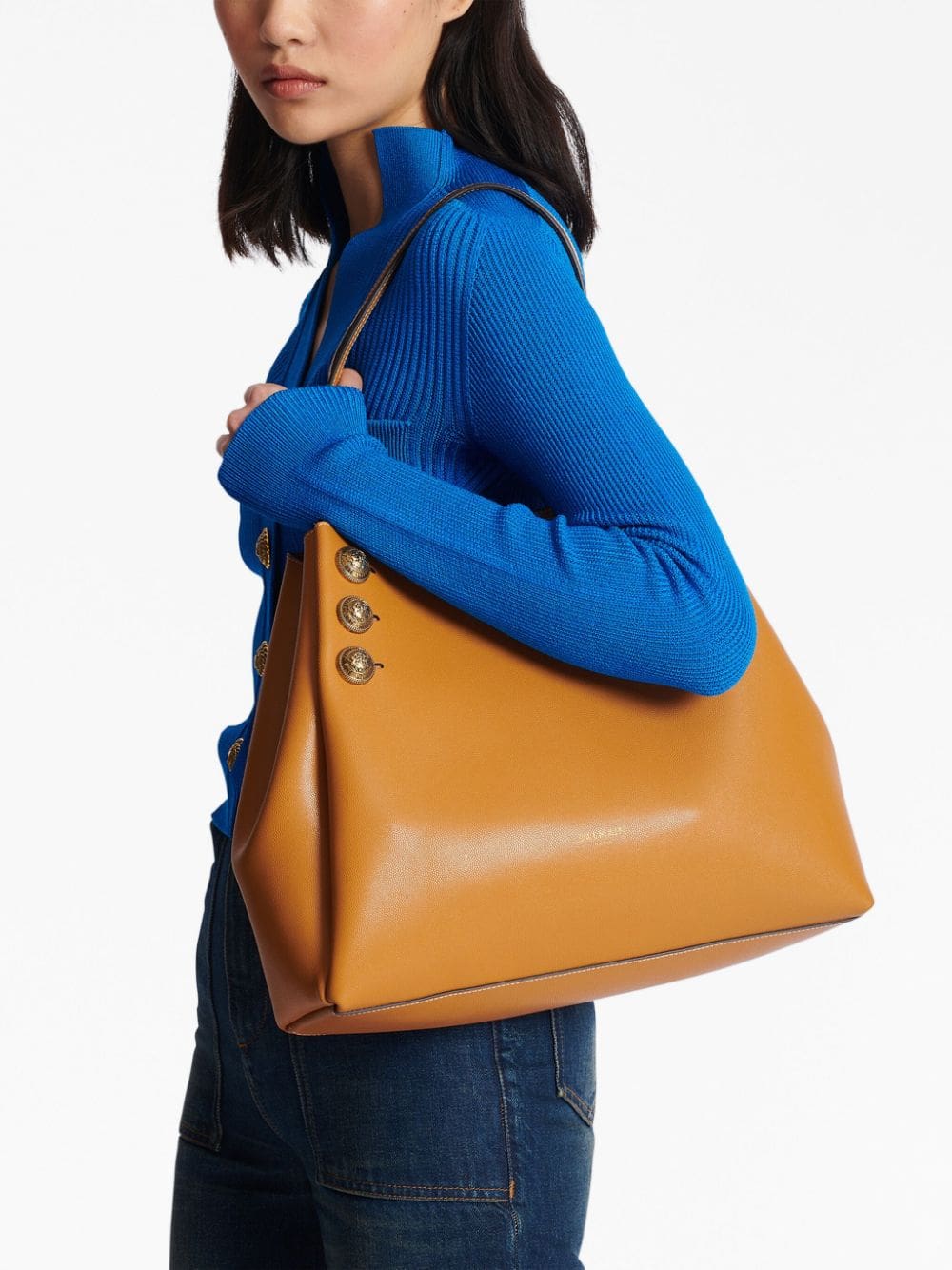Balmain's effortlessly opulent design style is showcased on this tote bag through the use of sophisticated materials and decorative button detailing.