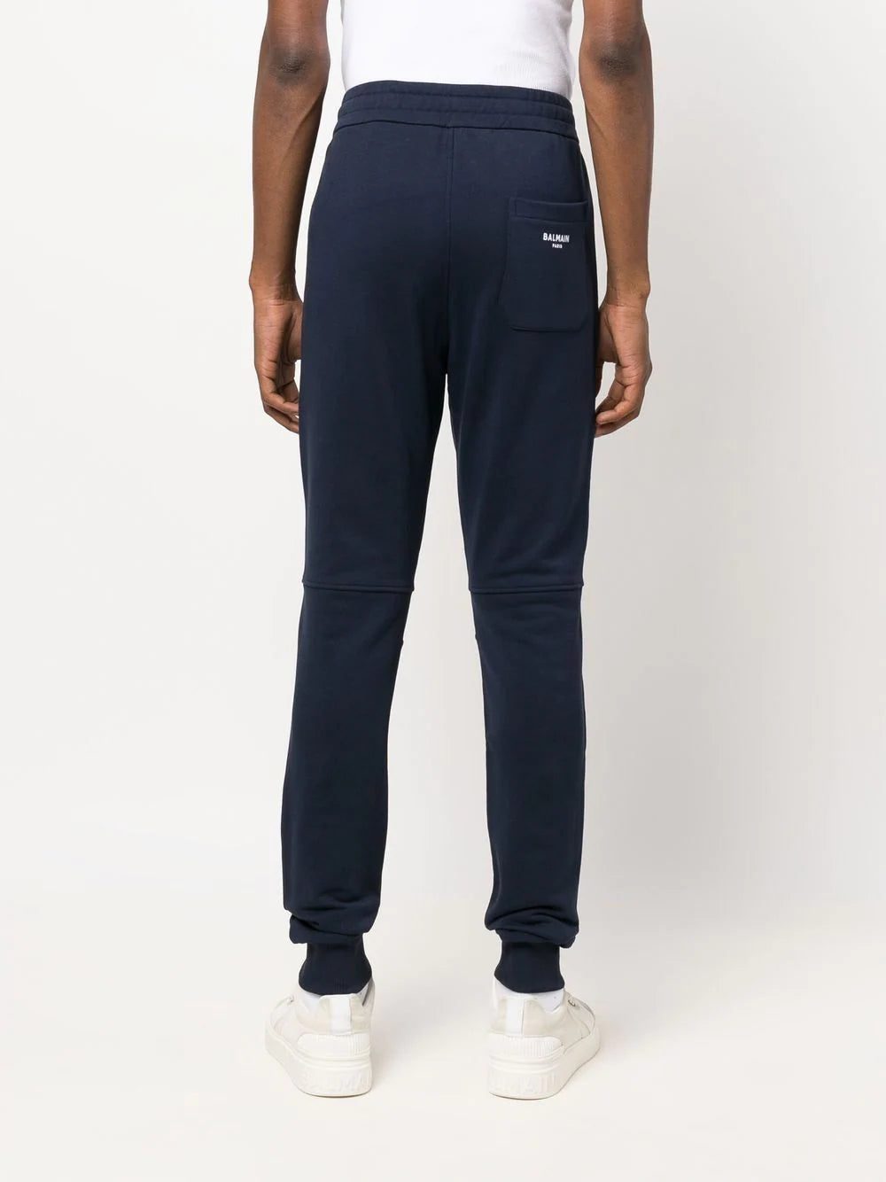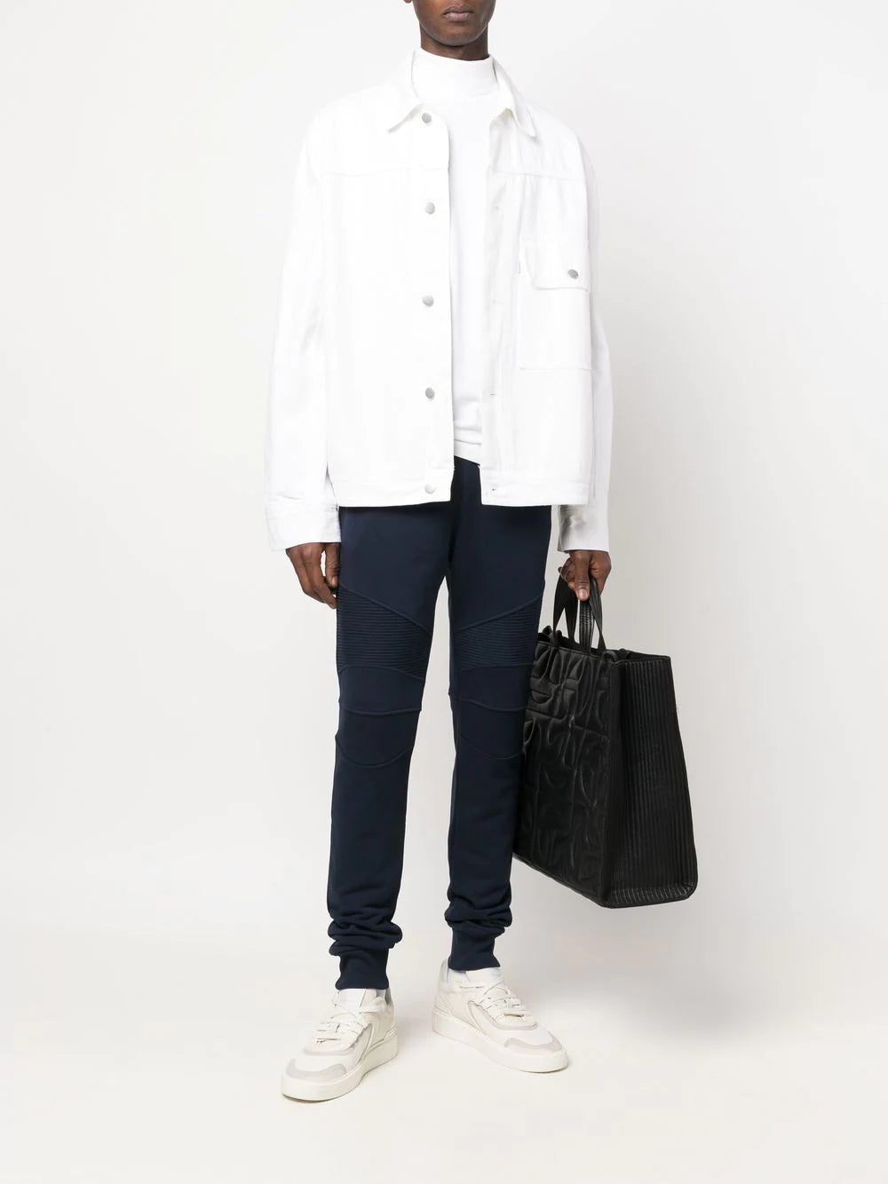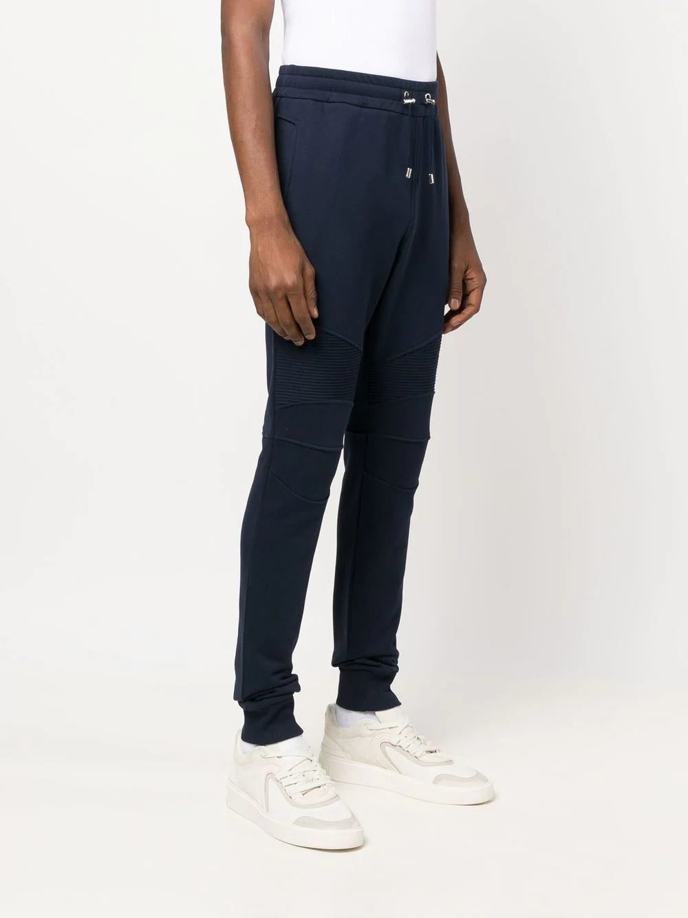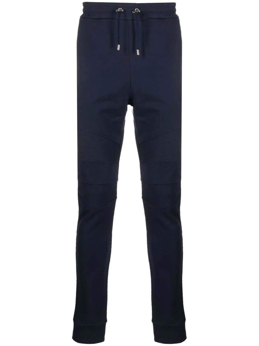 A recognisable Balmain design, these ribbed panelled track pants take inspiration from motorcycle gear. Crafted from a soft cotton fabrication, this piece is finished with the brand's logo-print on the rear pocket, aligning with Balmain's penchant for signature branding.