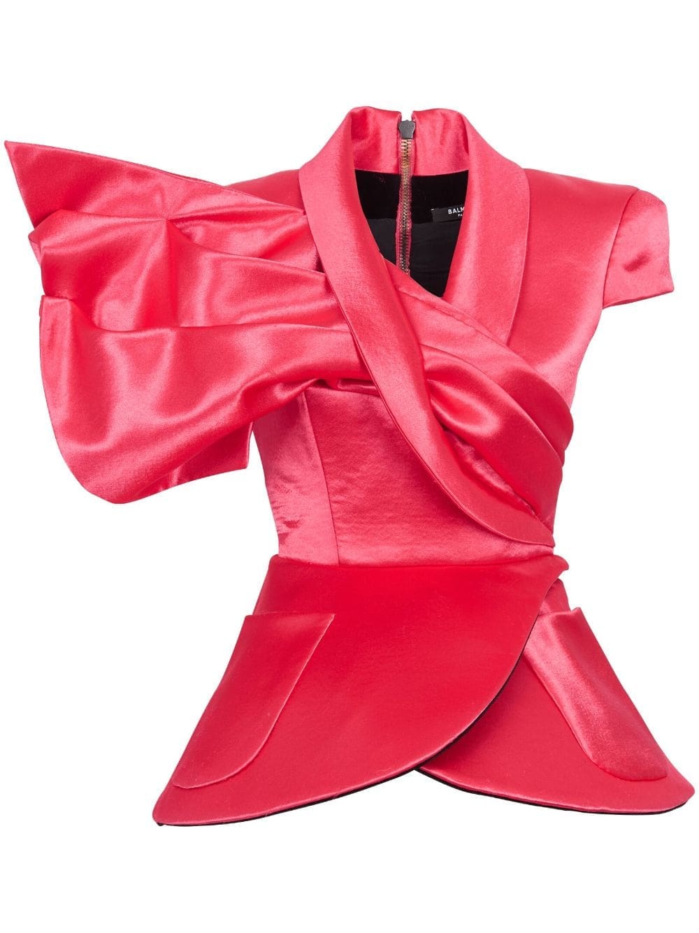 Standing out in bold fuchsia pink, this peplum blouse from Balmain emphasises its striking look through its peplum shape and structured shoulder detailing.
