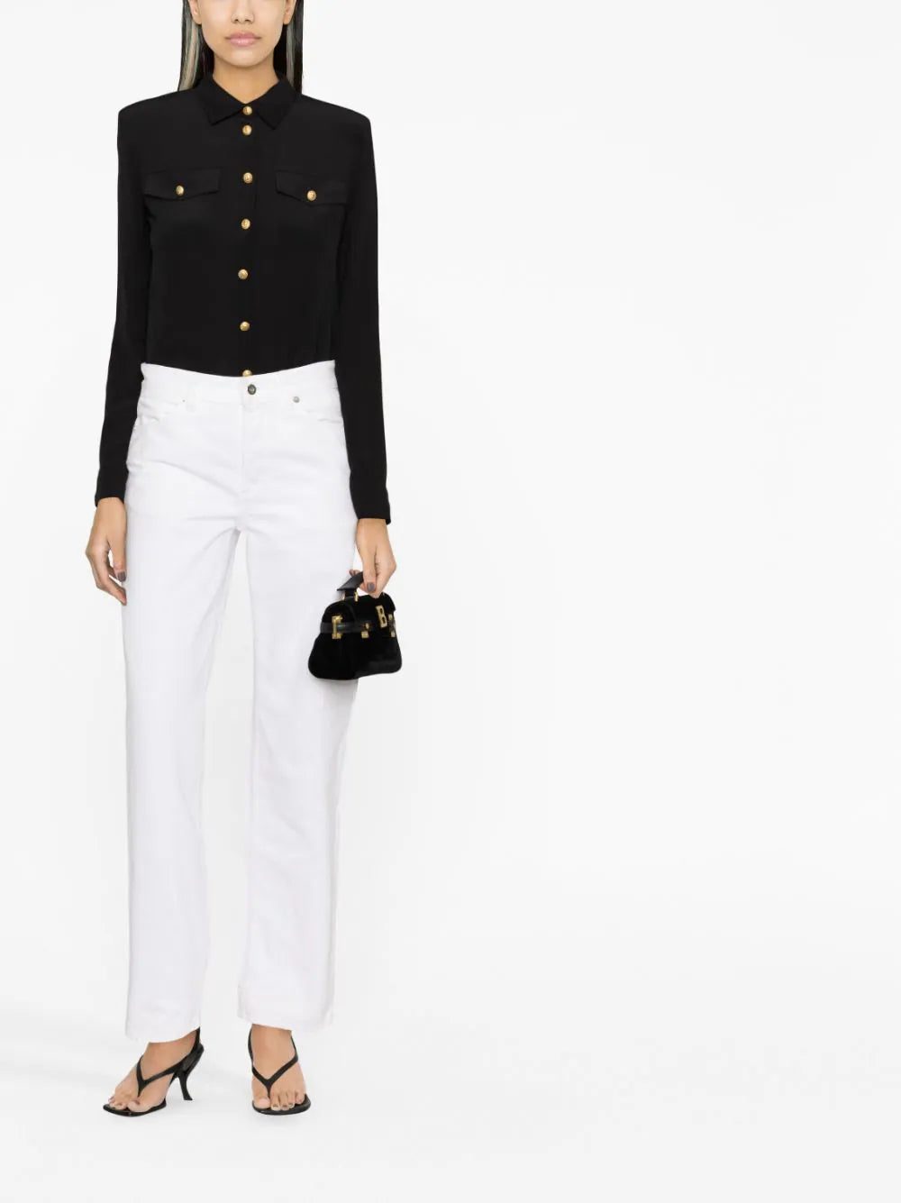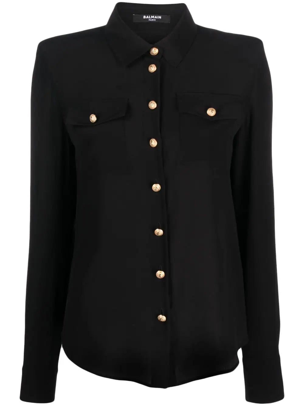 Balmain’s affinity for precise tailoring is showcased with this shirt. Cut from silk crepe de chine to a curved silhouette, it’s detailed with patch pockets and logo-embossed gold-tone buttons.