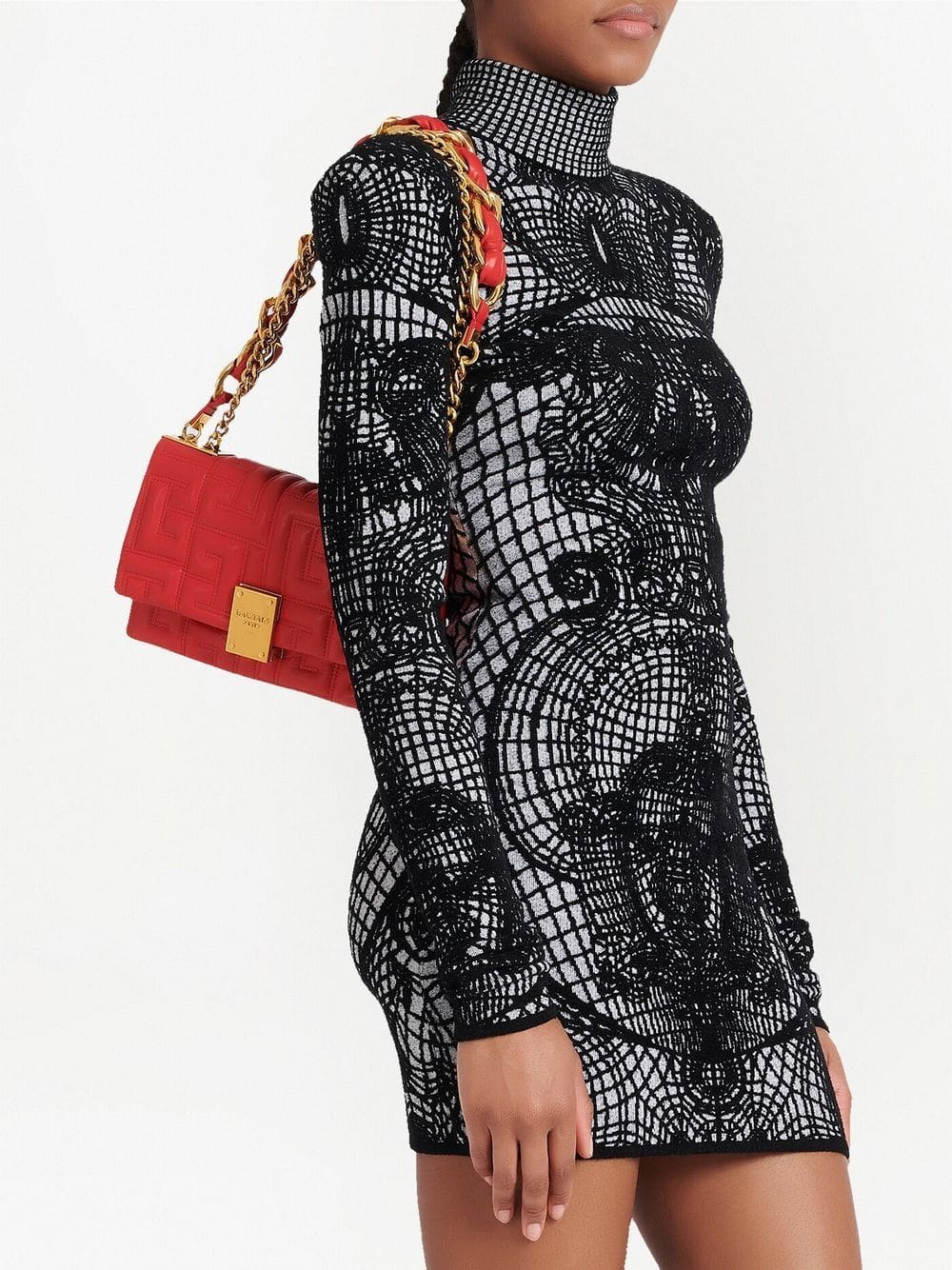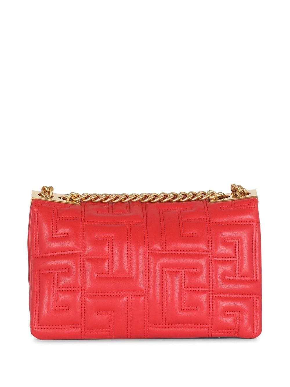 red leather quilted gold-tone logo plaque front flap closure chain-link shoulder strap