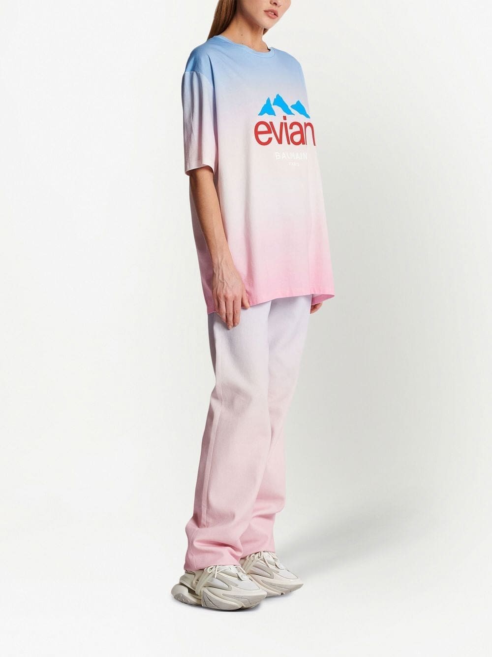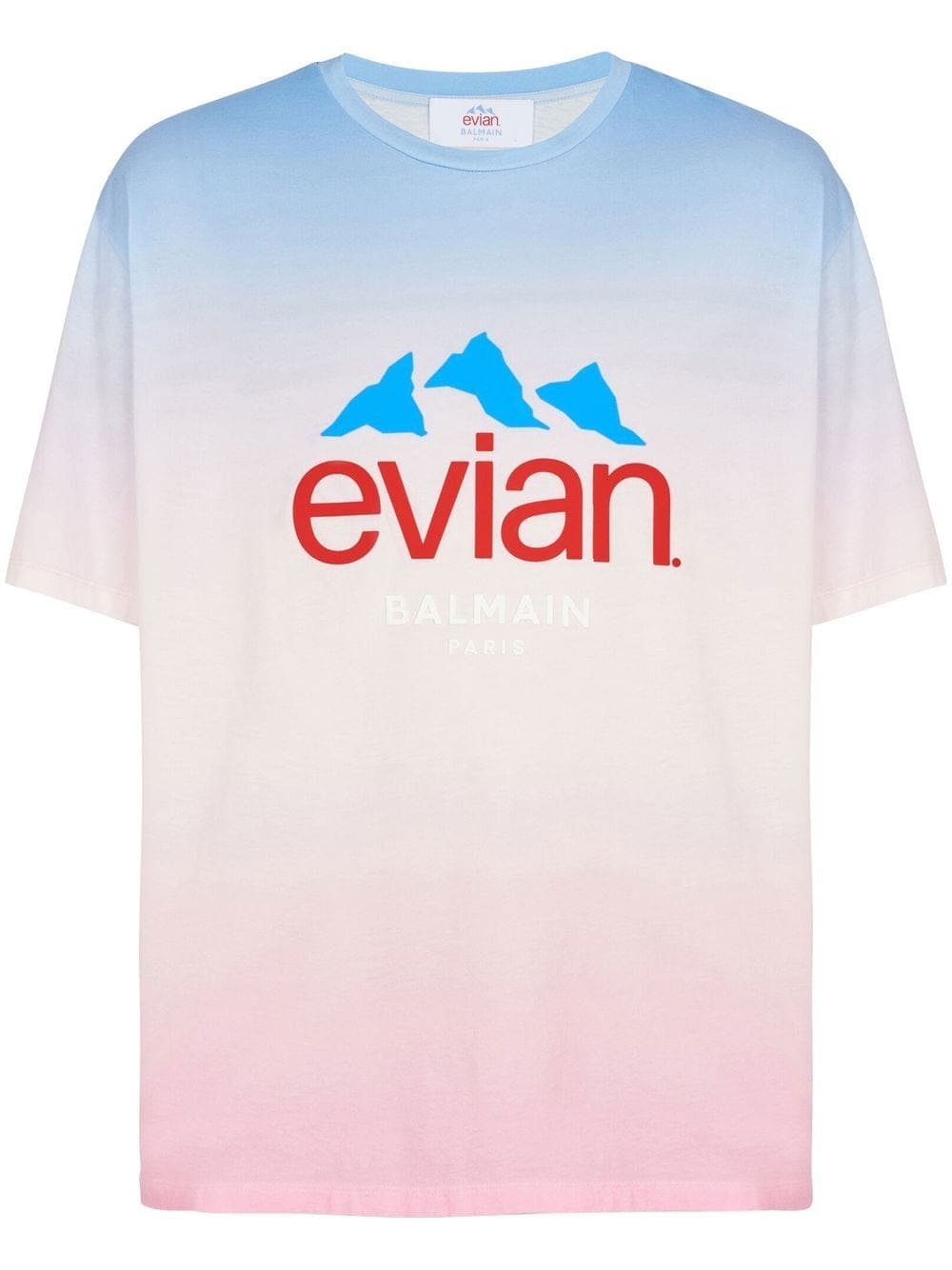 Infused with soft pastel pink, baby blue and lilac purple hues in a gradient effect, this T-shirt is a lively addition to Balmain's SS23 collection. Partnered with Evian, the relaxed construction is crafted from organic cotton and is complete with logo prints to the front for a recognisable look.