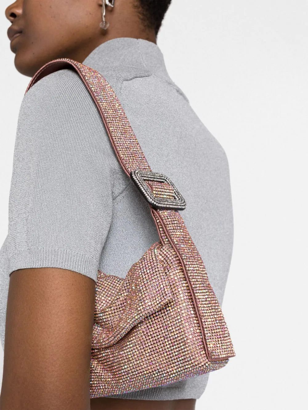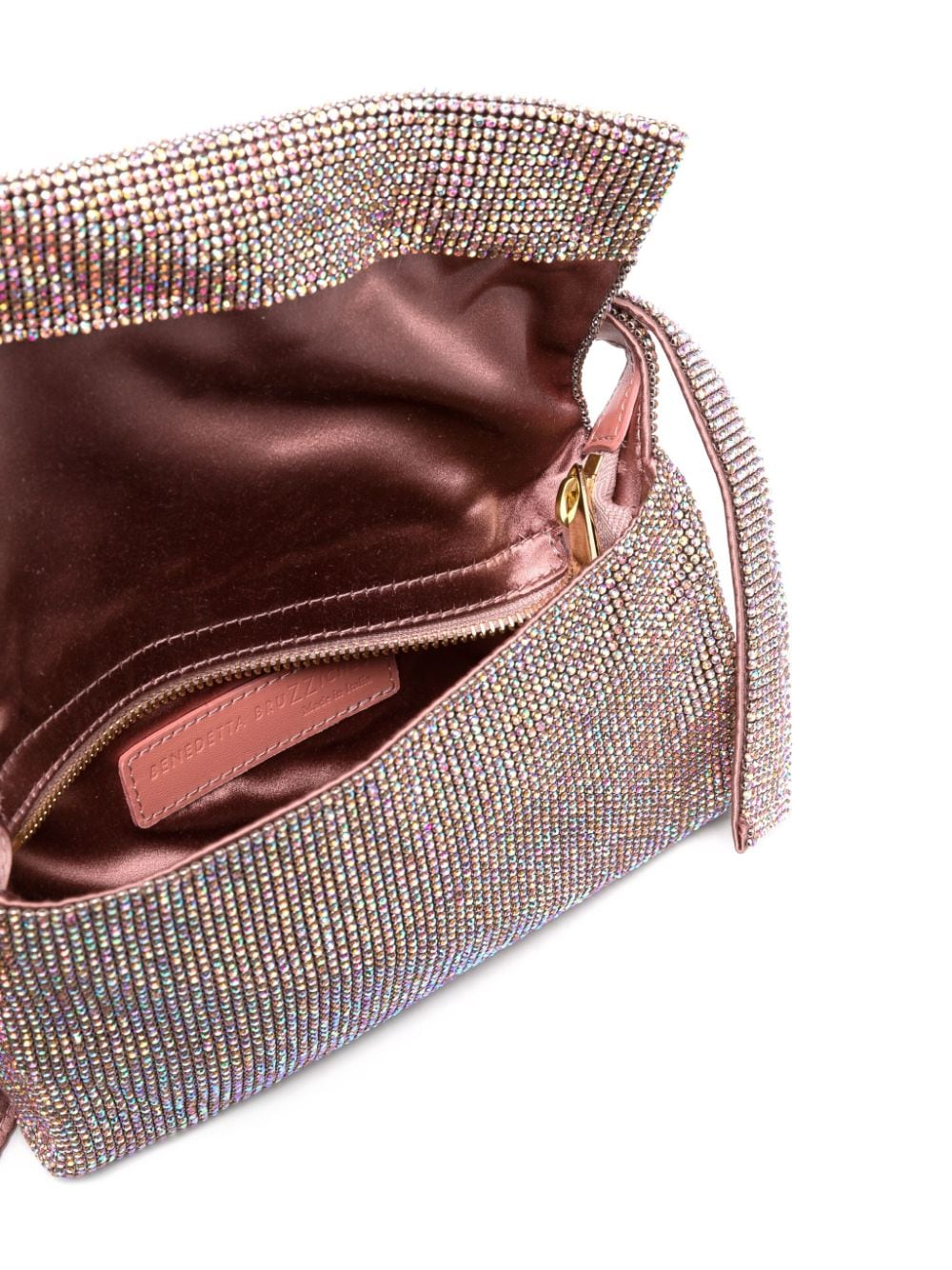 Vitty Mignon shoulder bag from BENEDETTA BRUZZICHES featuring pink, crystal embellishment, buckle-detail shoulder strap, foldover top, top zip fastening, main compartment and internal logo patch.