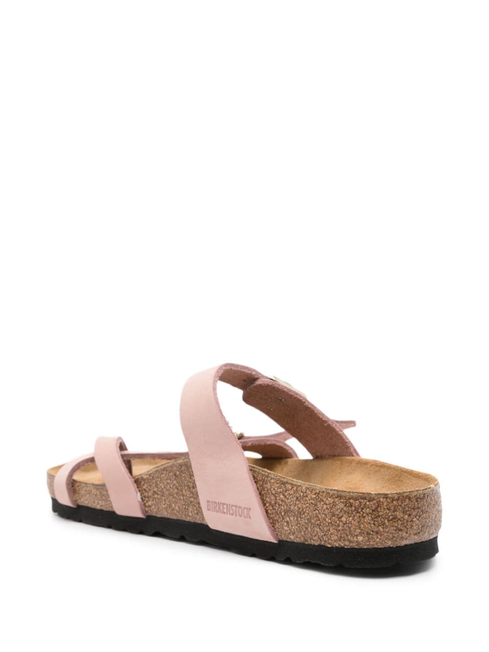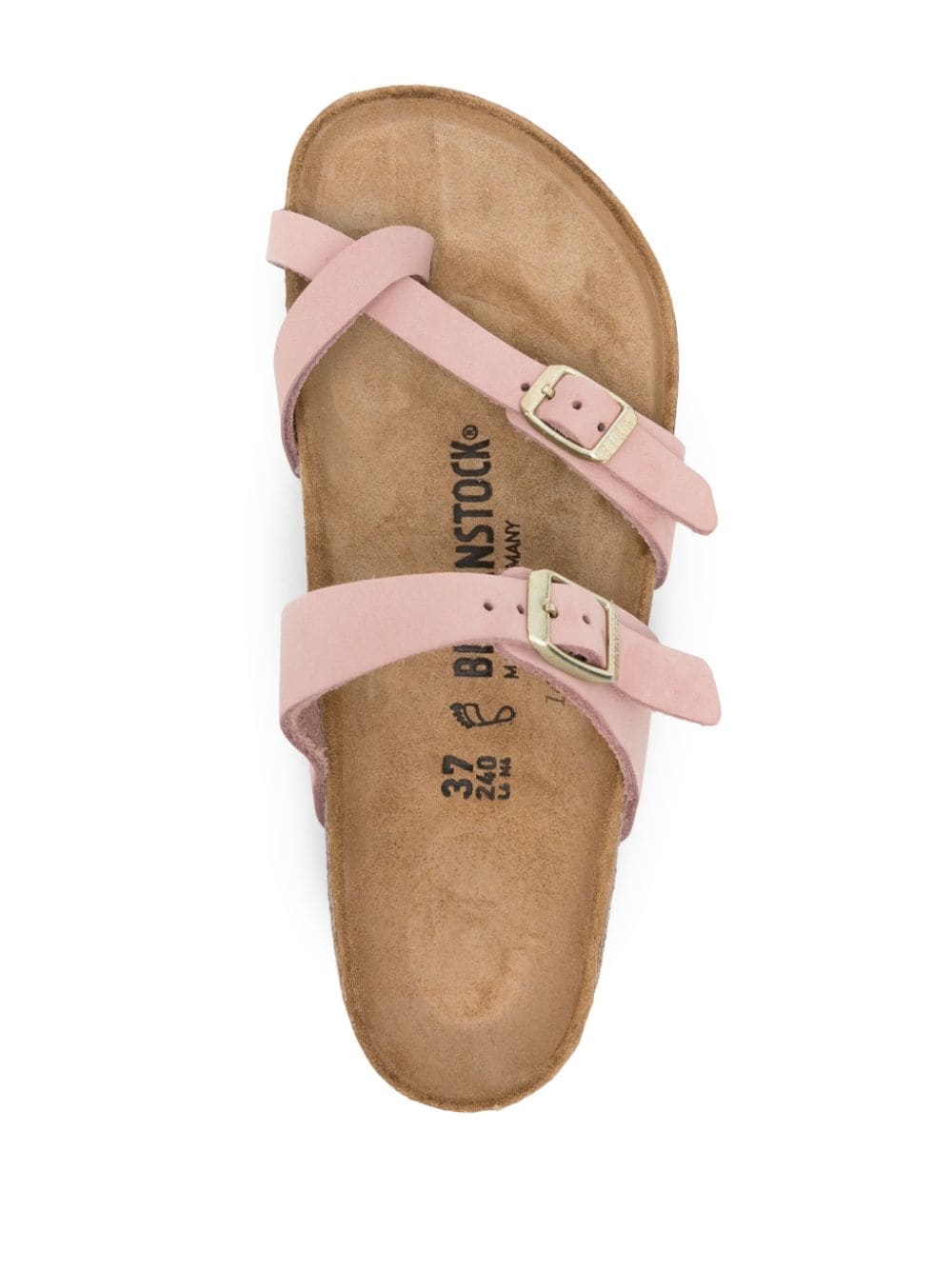 Birkenstock's Mayari slides are crafted from nubuck leather and feature a crossover strap at the toe that's secured with a buckle fastening.