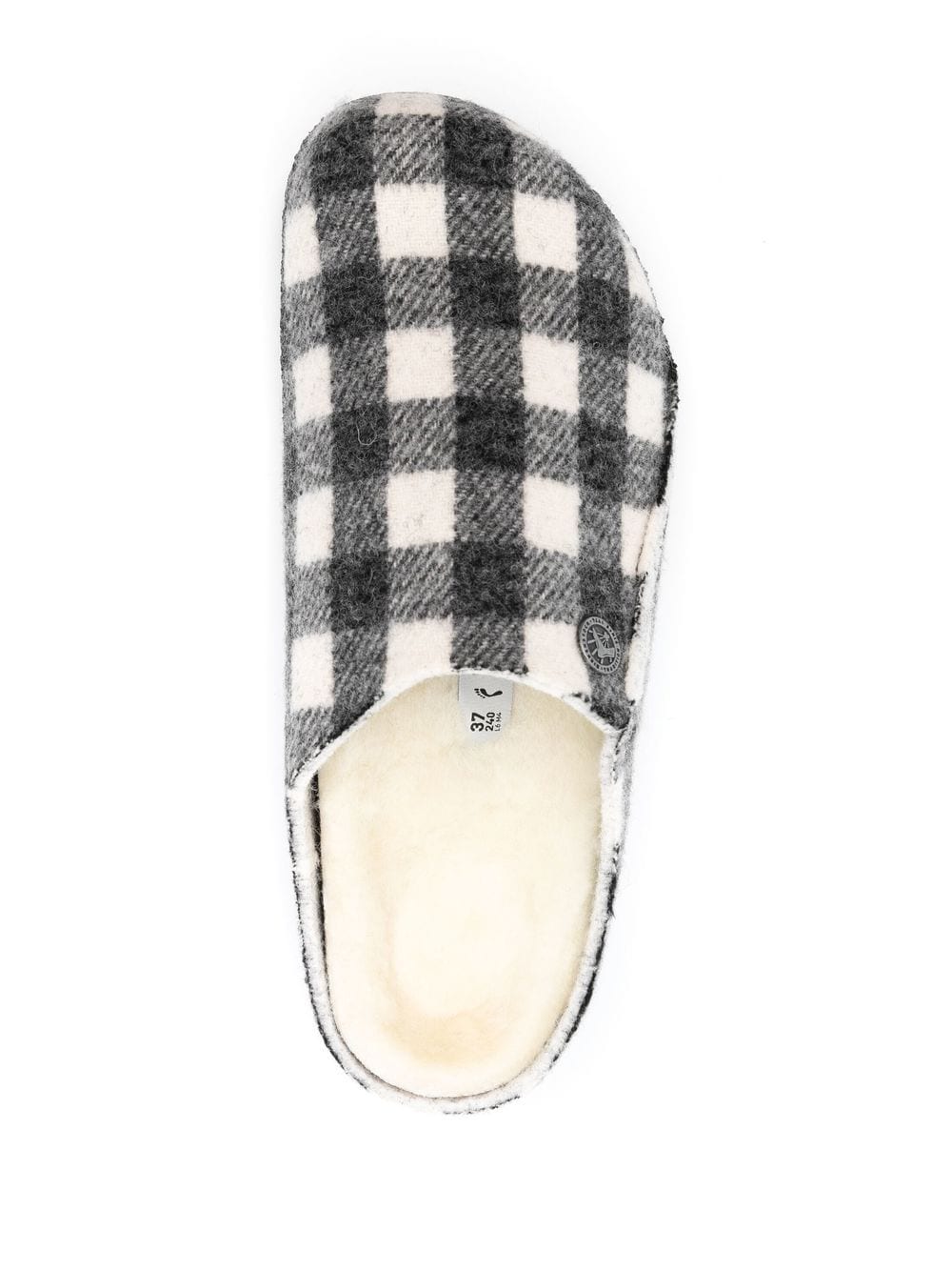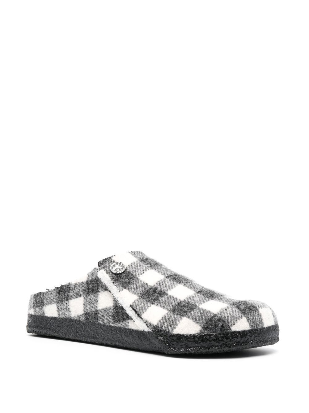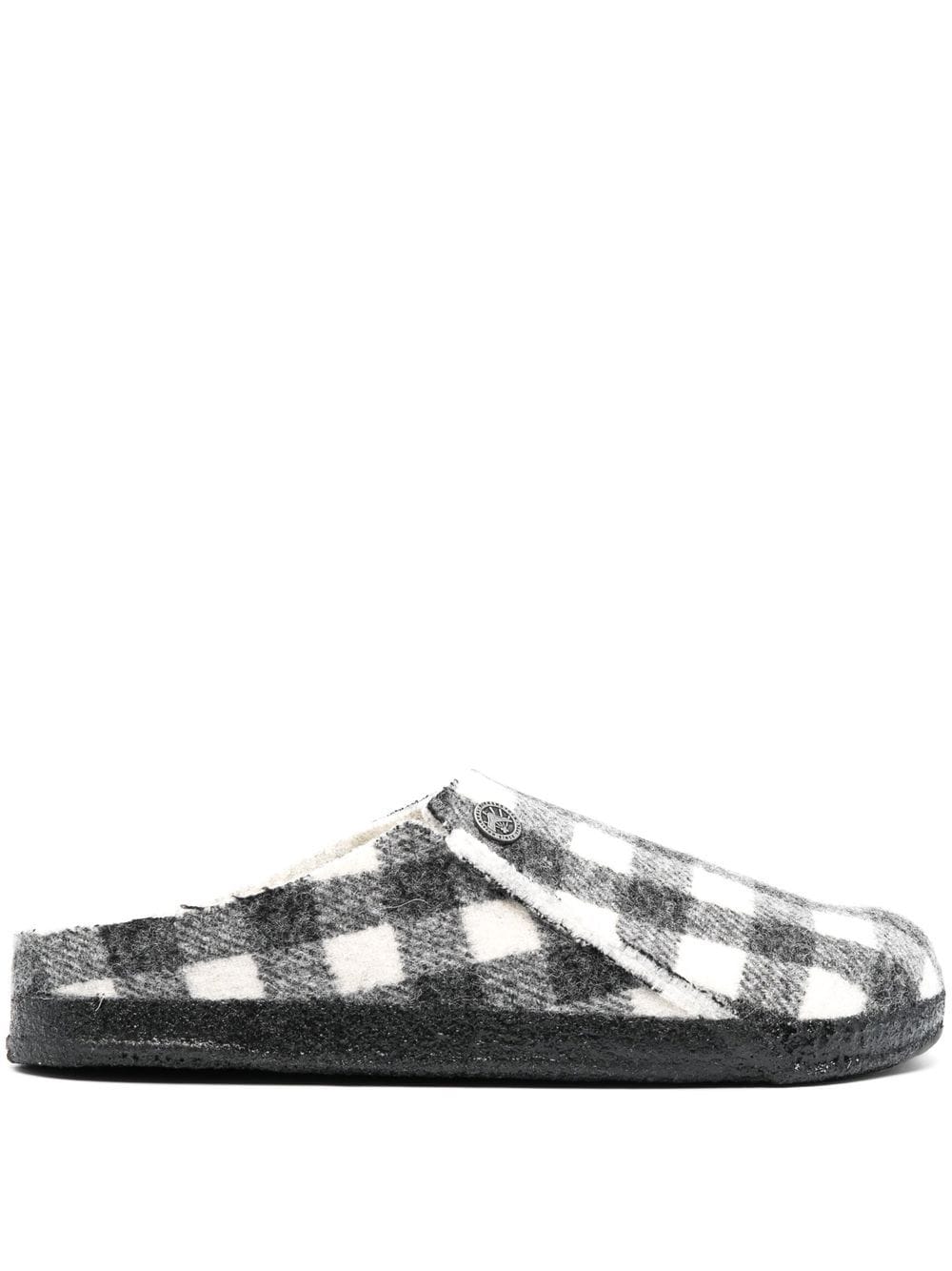 white/black cork plaid check print branded insole round toe slip-on style flat rubber sole