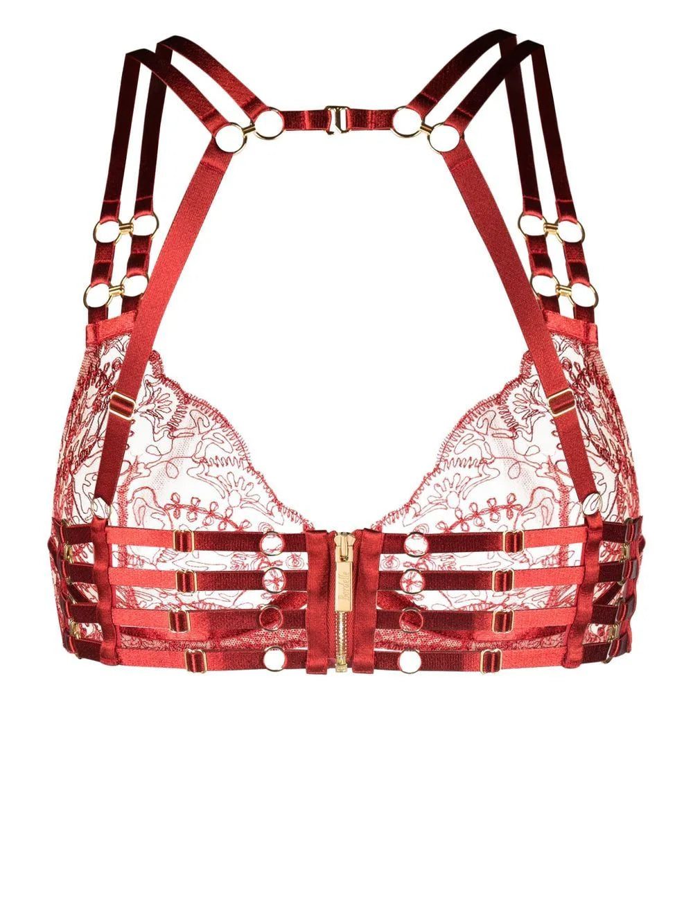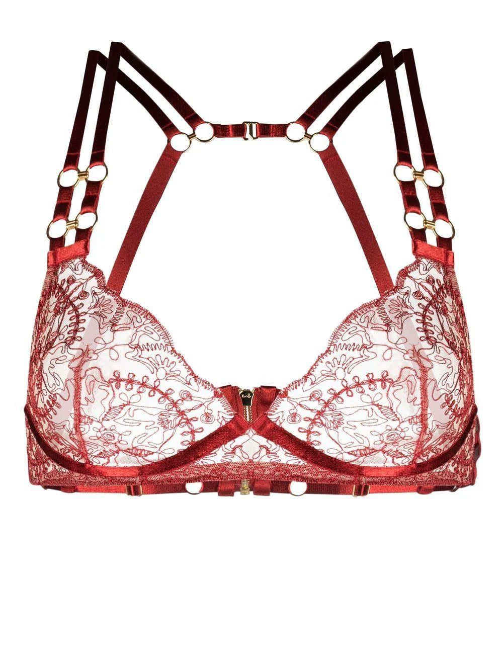 red transparent design sheer lace detailing spaghetti straps multi-way straps rear zip fastening rear clasp fastening plunge style