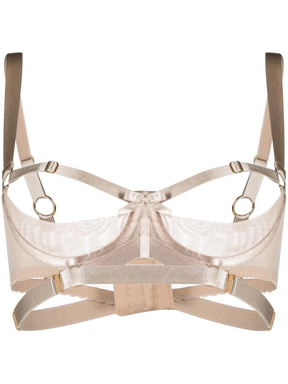 light beige stretch-design cut-out detailing bow detailing adjustable shoulder straps underwire cup rear hook and eye fastening