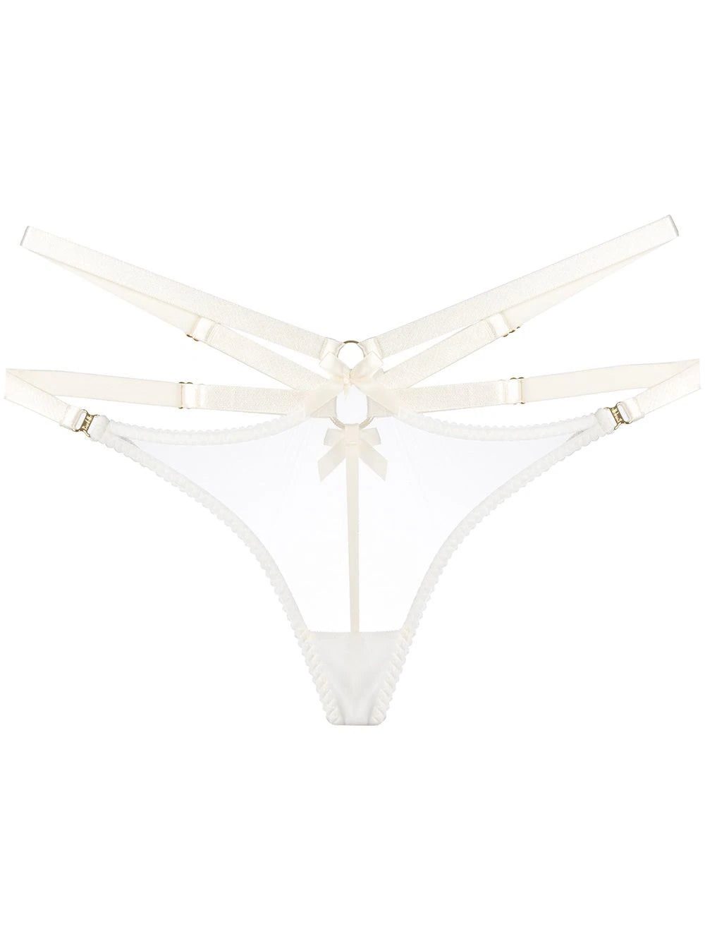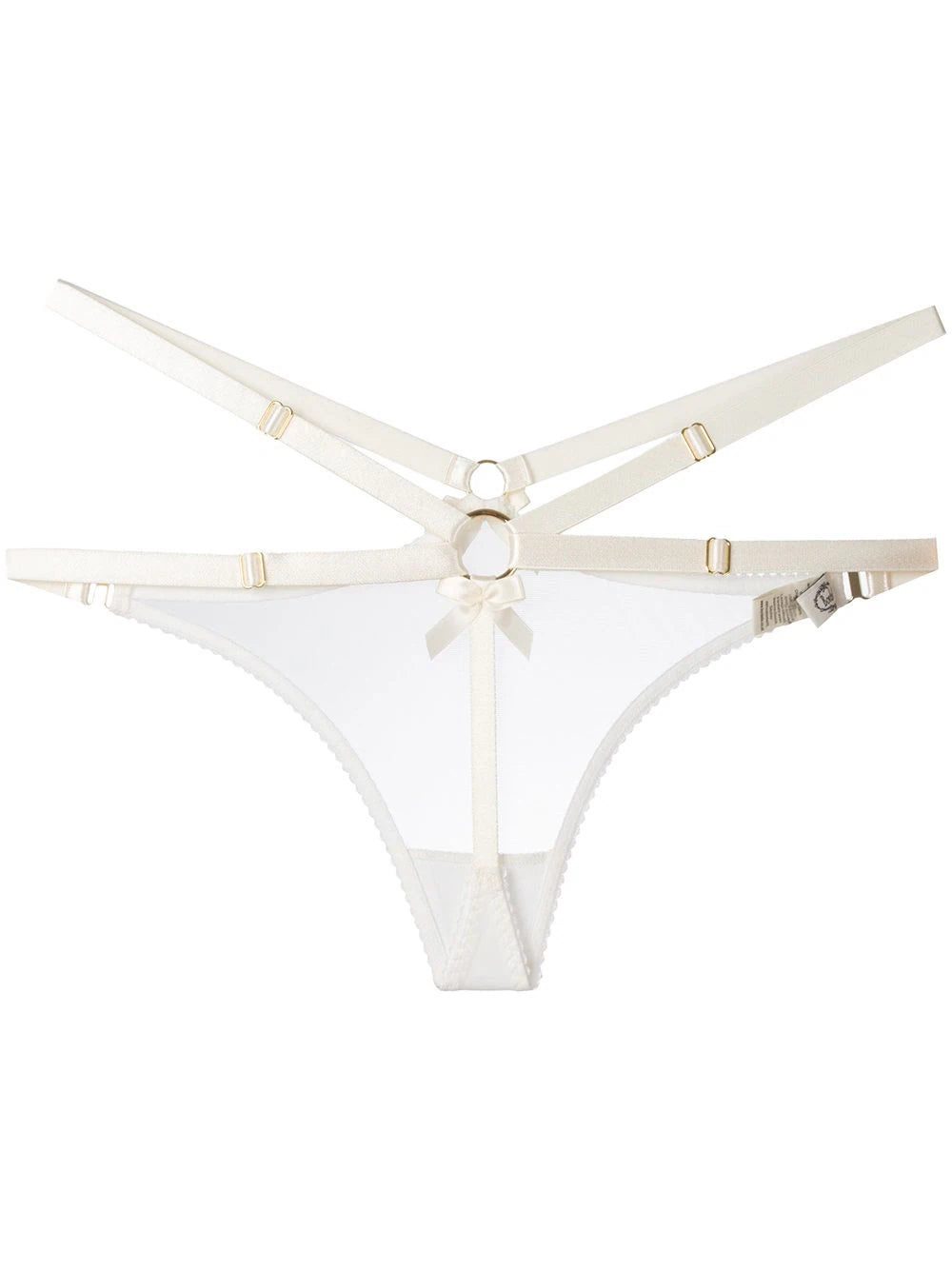 Cream harness thong from Bordelle. Underwear and lingerie must be tried on over your own garments.