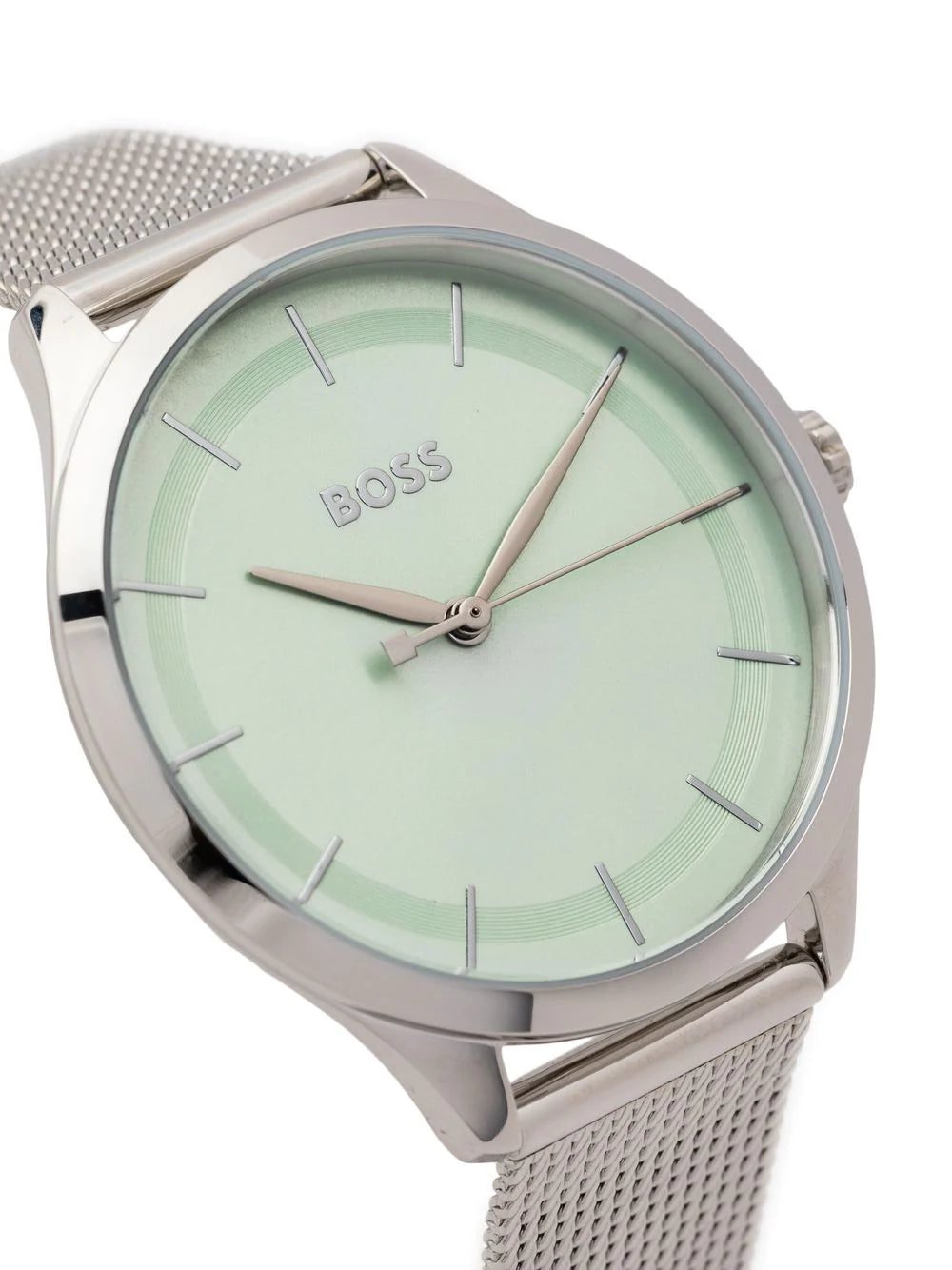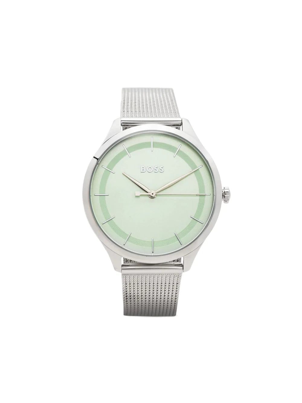An understated approach to watchmaking, BOSS' Pura 36mm timepiece is characterised by a minimal construction with clean lines. This allows the slender dauphine hands to move elegantly across the green dial.