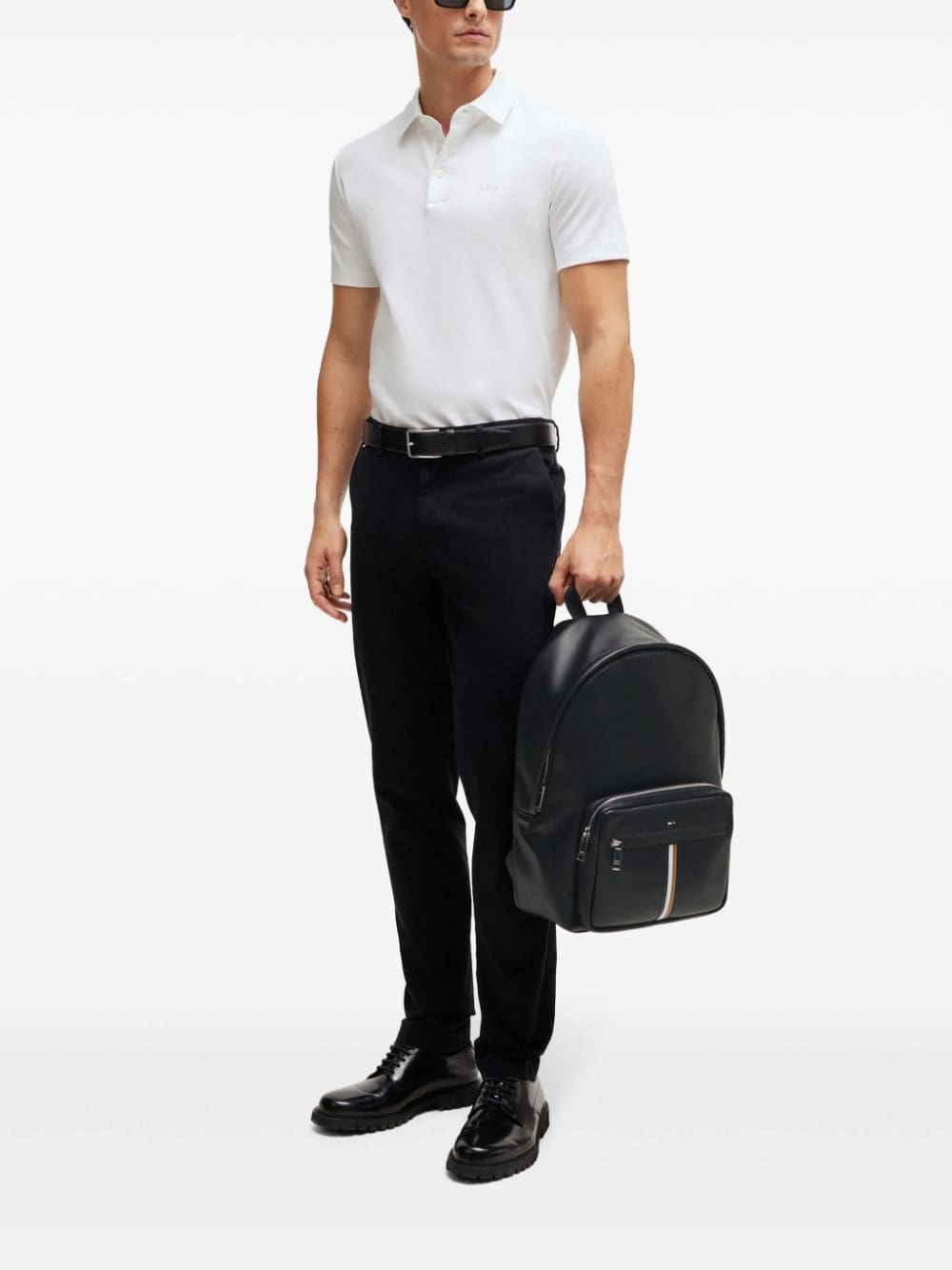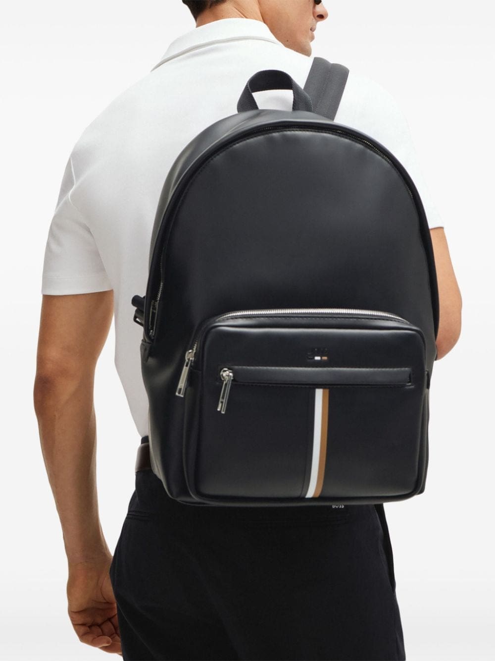 stripe-detail faux-leather backpack