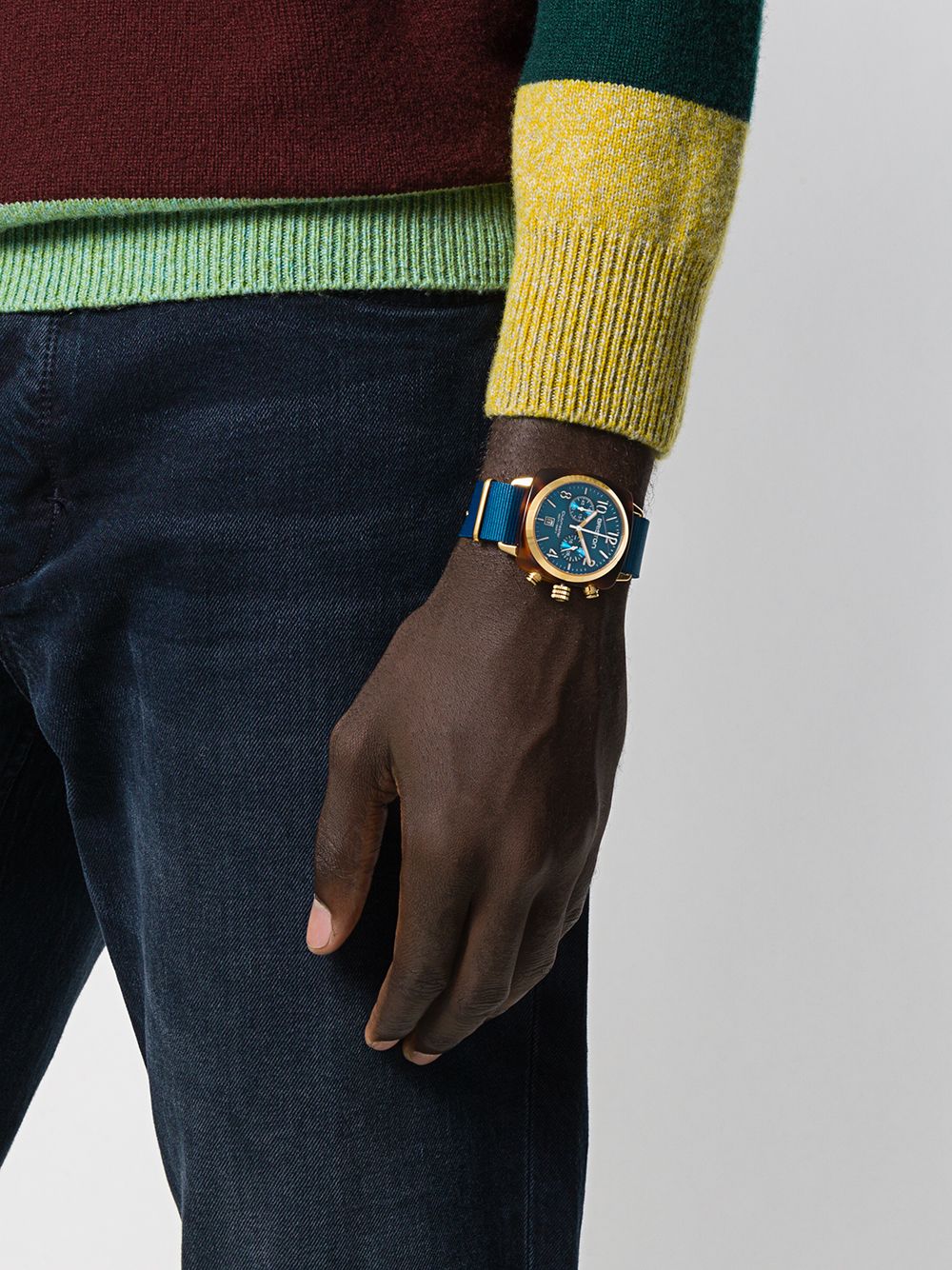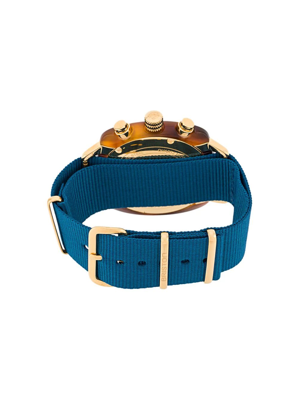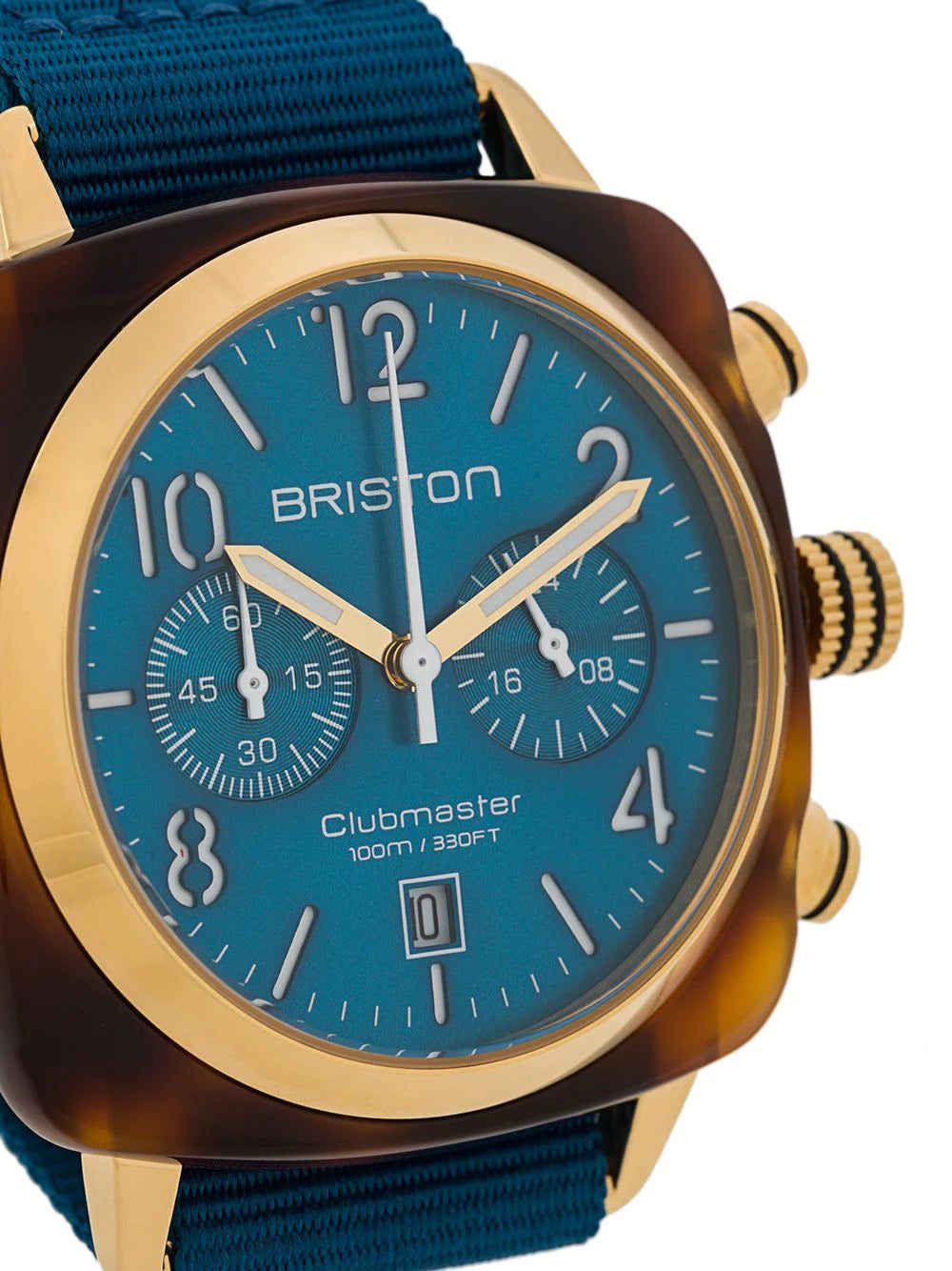 French watchmakers Briston were born out of a rich inspiration from British sports. Unique in style with a contemporary finish, the Clubmaster Classic 40mm watch is finished with a peacock blue face with a tortoise-shell brown acetate case. Powered by a quartz Miyota movement, watch as two gold-tone rhodium plated hands move around the dial, complete with two chronograph date counters. Fastened with a peacock blue NATO wrist strap, the Clubmaster Classic is water-resistant up to 100 metres (10ATM). This item comes with a standard 2-year international warranty from the brand.