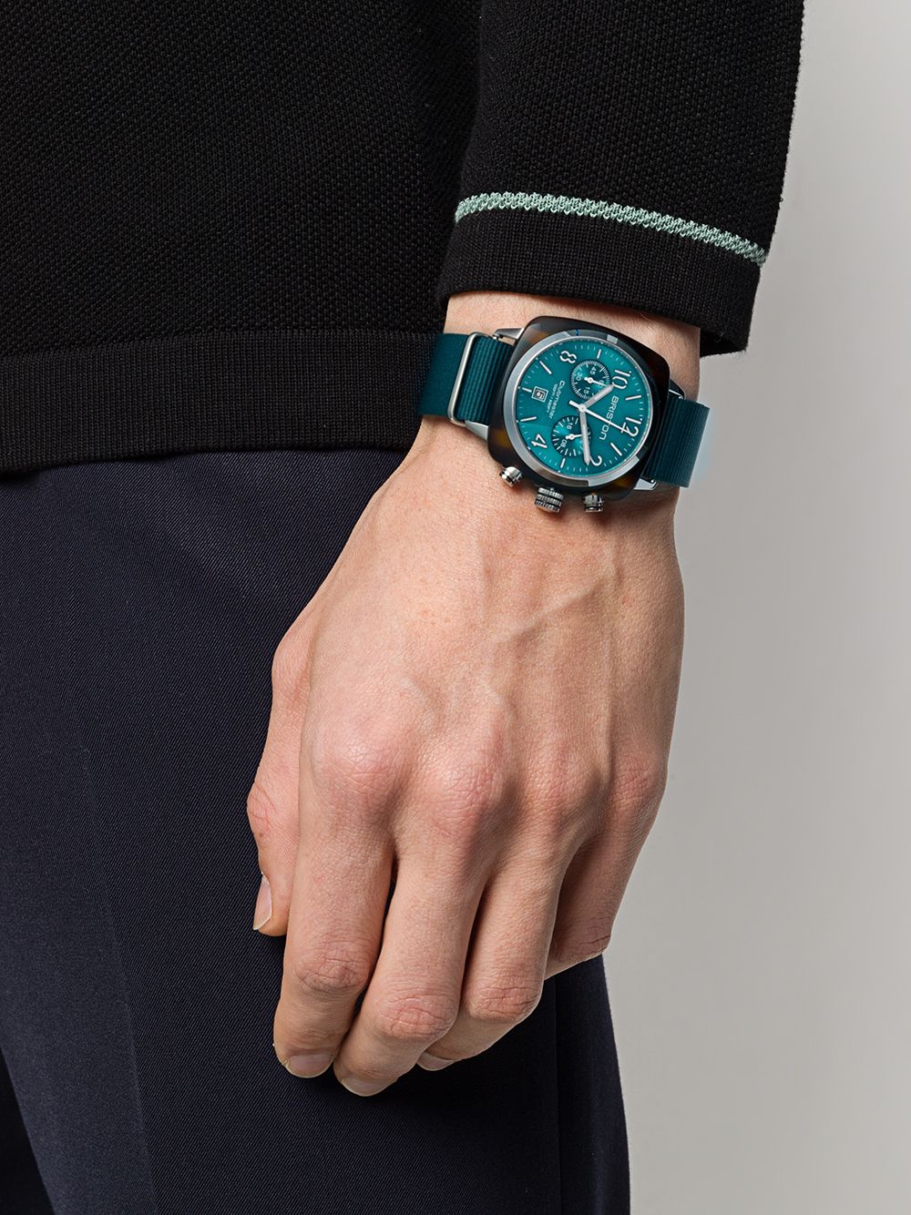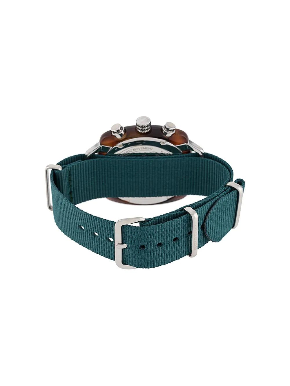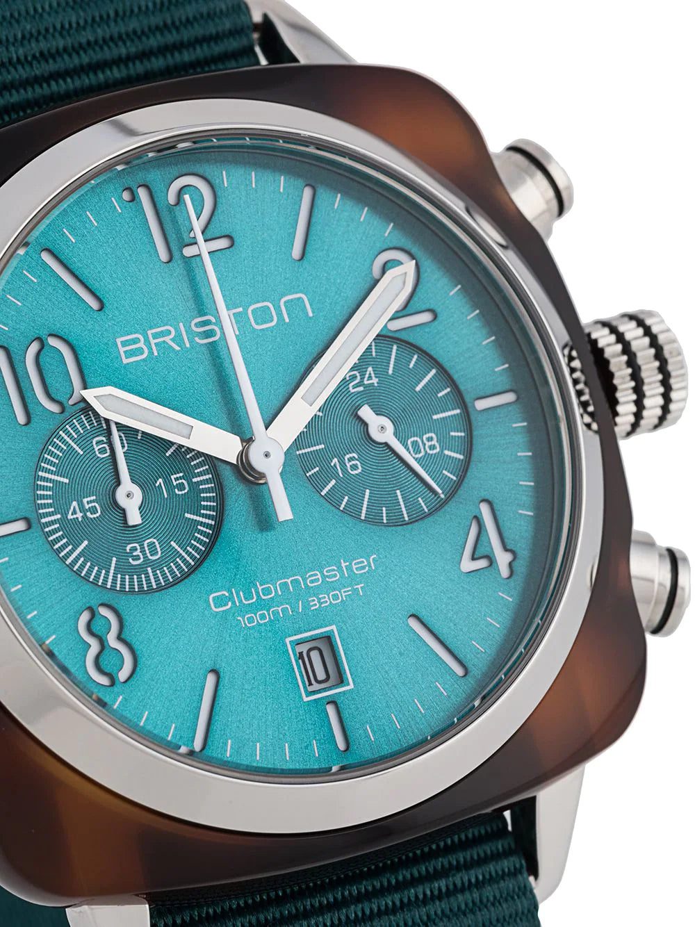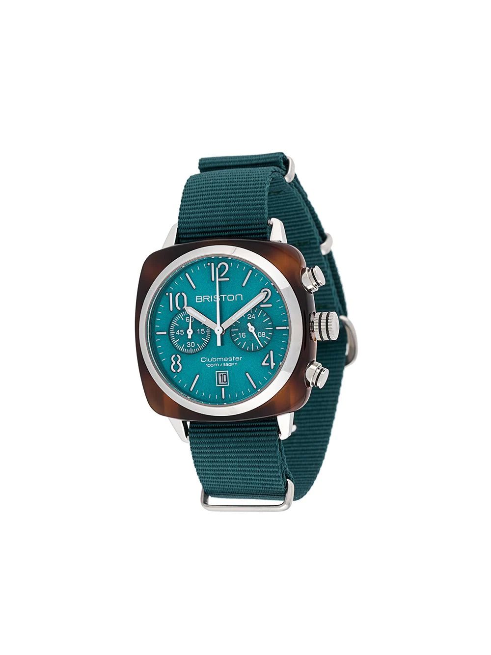 French watchmakers Briston were born out of a rich inspiration from British sports. Unique in style with a contemporary finish, the Clubmaster Classic 40mm watch is finished with an emerald green face with a tortoise-shell brown acetate case. Powered by a quartz Miyota movement, watch as two hands move around the dial, complete with two chronograph date counters. Fastened with a green NATO fabric wrist strap, the Clubmaster Classic is water-resistant up to 100 metres (10ATM). This item comes with a standard 2-year international warranty from the brand.