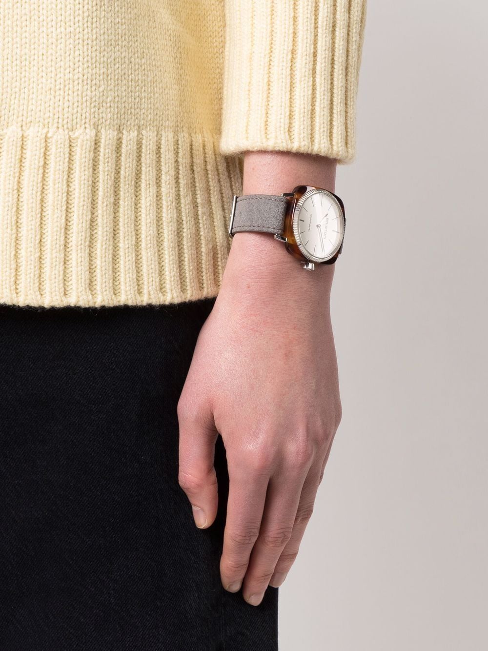 - leather/stainless steel/acetate