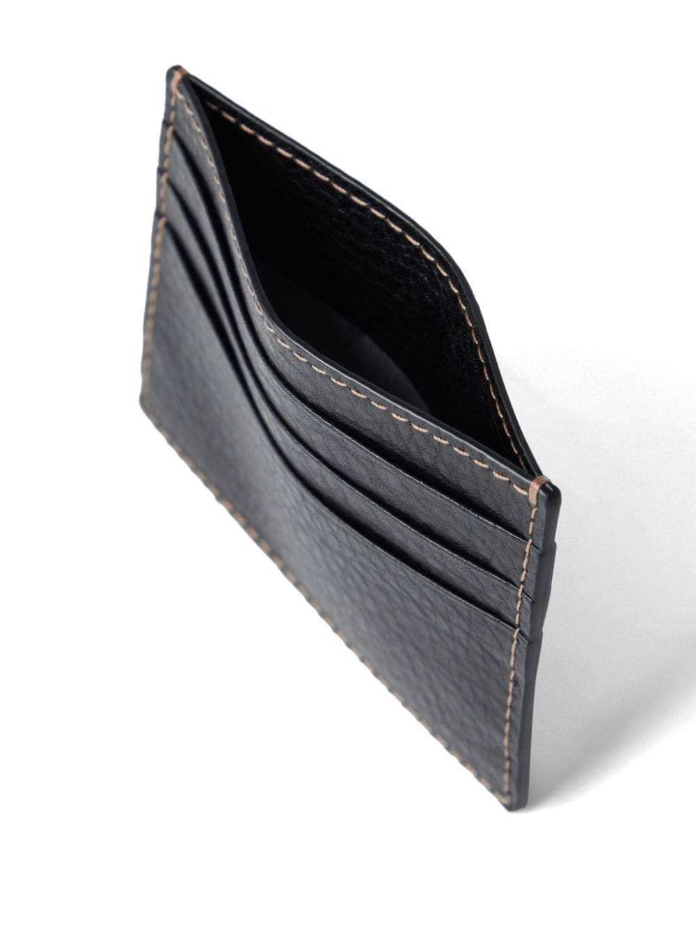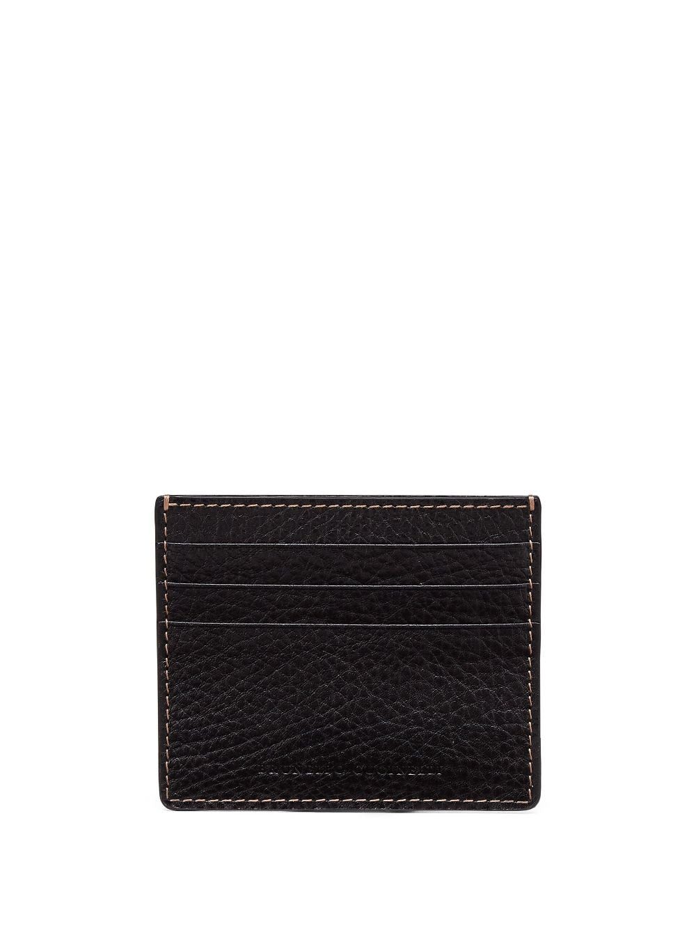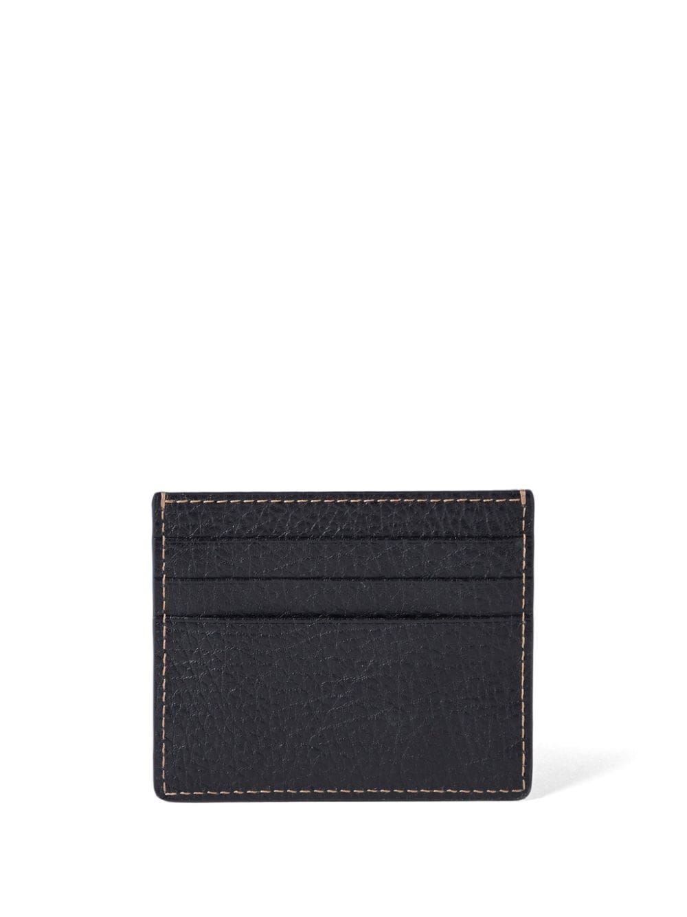 logo-debossed leather cardholder from BRUNELLO CUCINELLI featuring black, calf leather, grained texture, debossed logo to the front, card slots and rectangle shape.