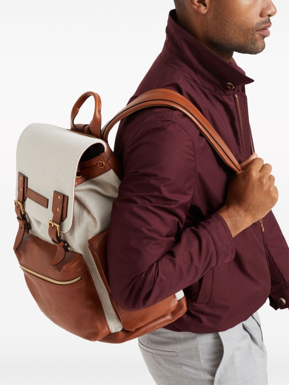 Brunello Cucinelli logo-patch leather backpack
