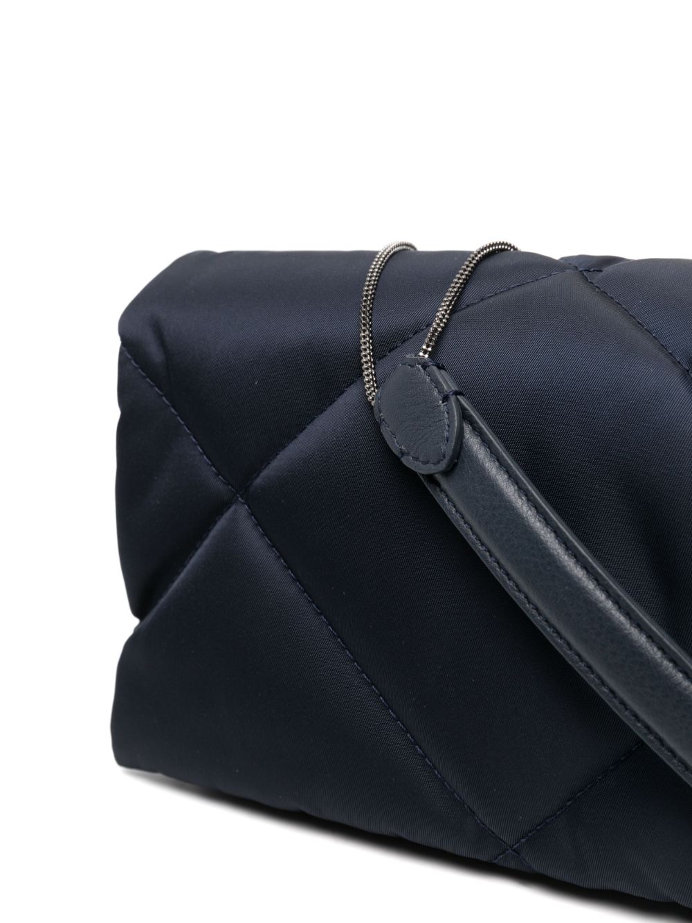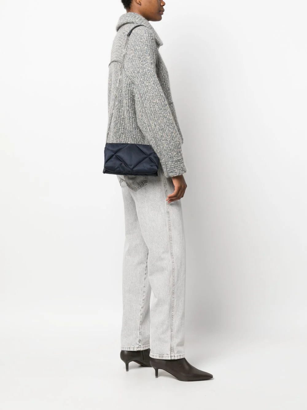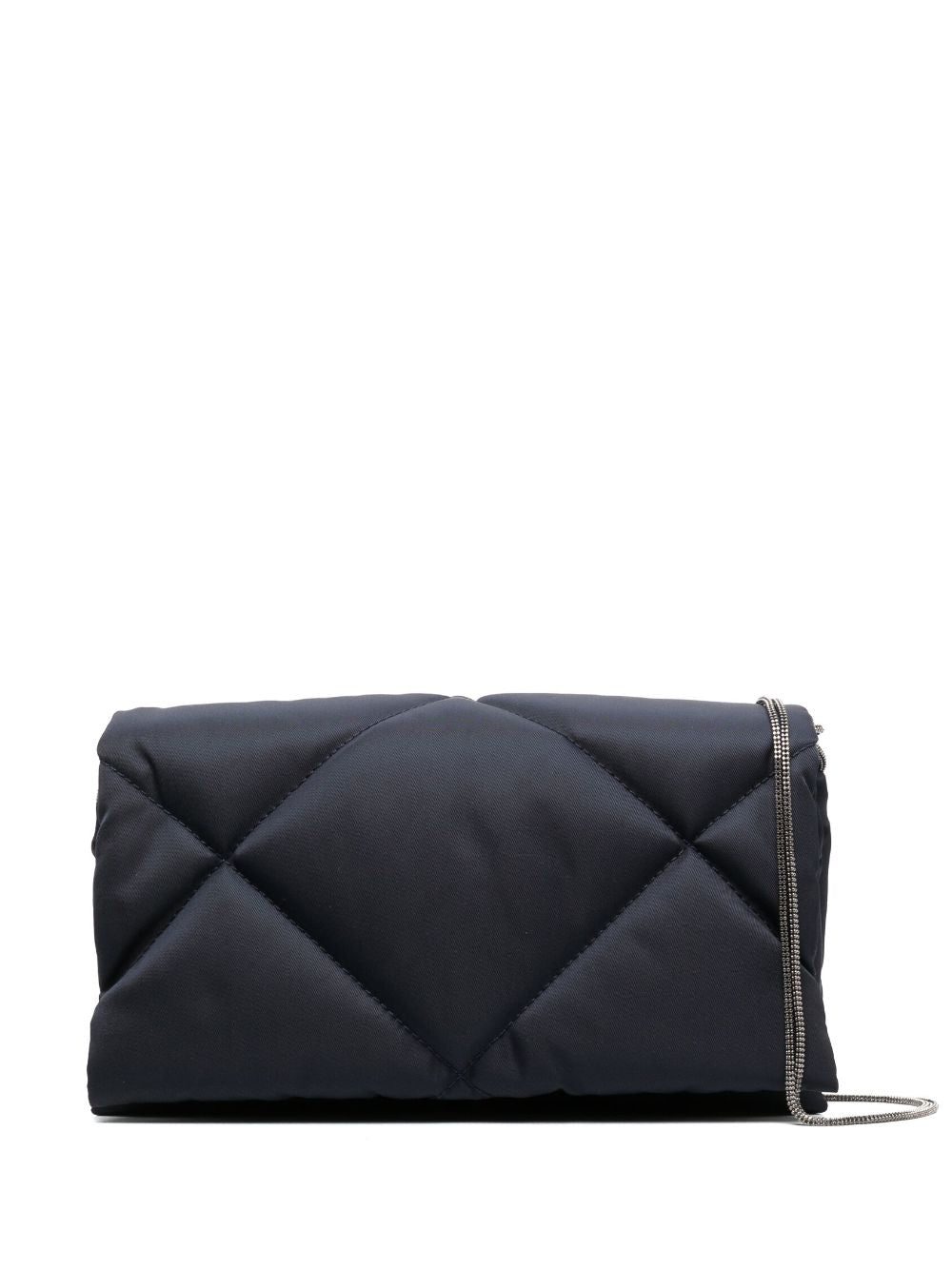 Constructed in an elegant quilted design, this midnight blue crossbody bag is embellished with Brunello Cucinelli's signature Monili beads at the strap, reflecting the brand's classic aesthetic.
