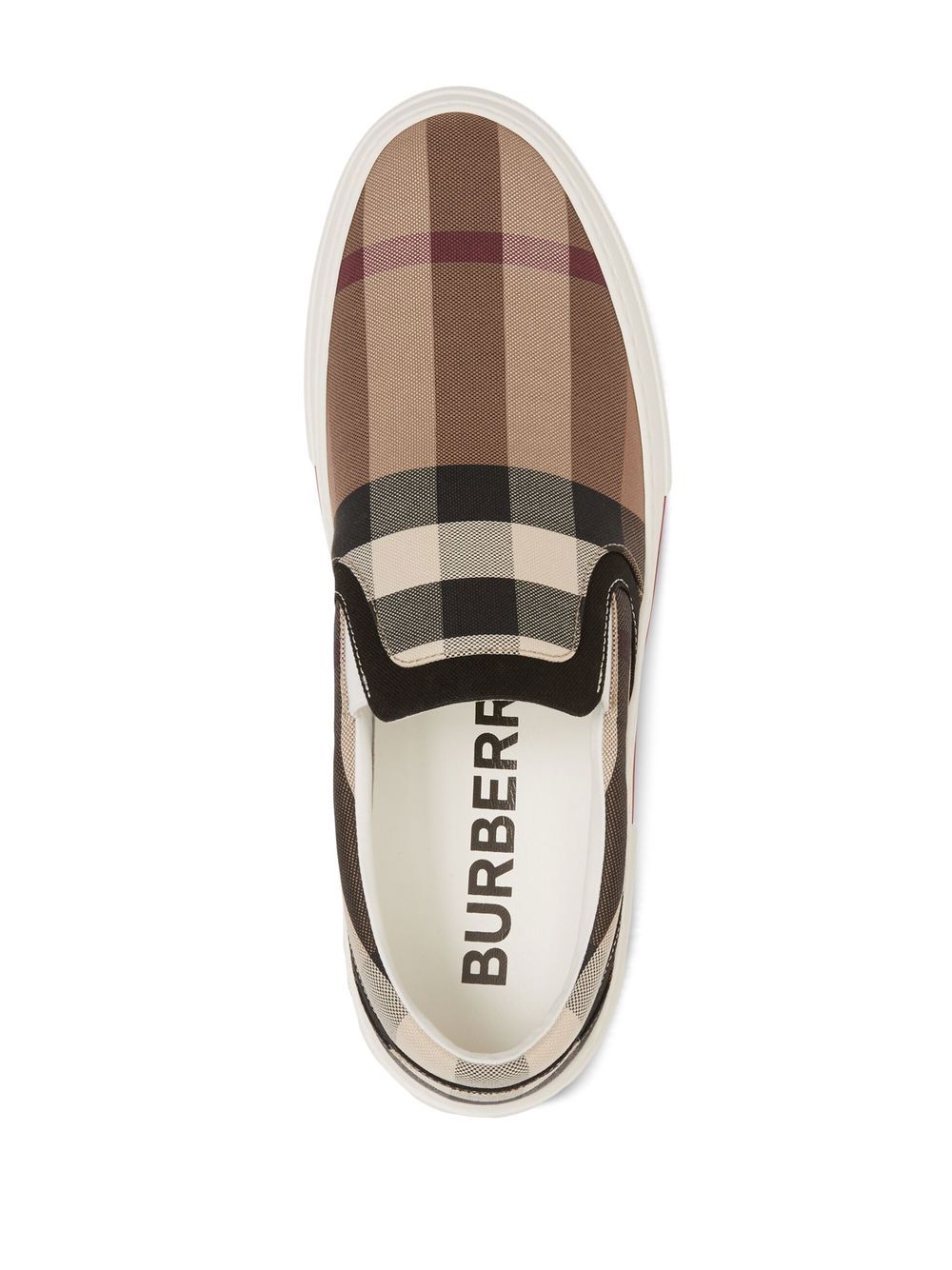 Burberry's slip-on sneakers spotlight the brand's archival checked pattern that debuted on the linings of the label's iconic trench coats. They rest on chunky rubber soles.