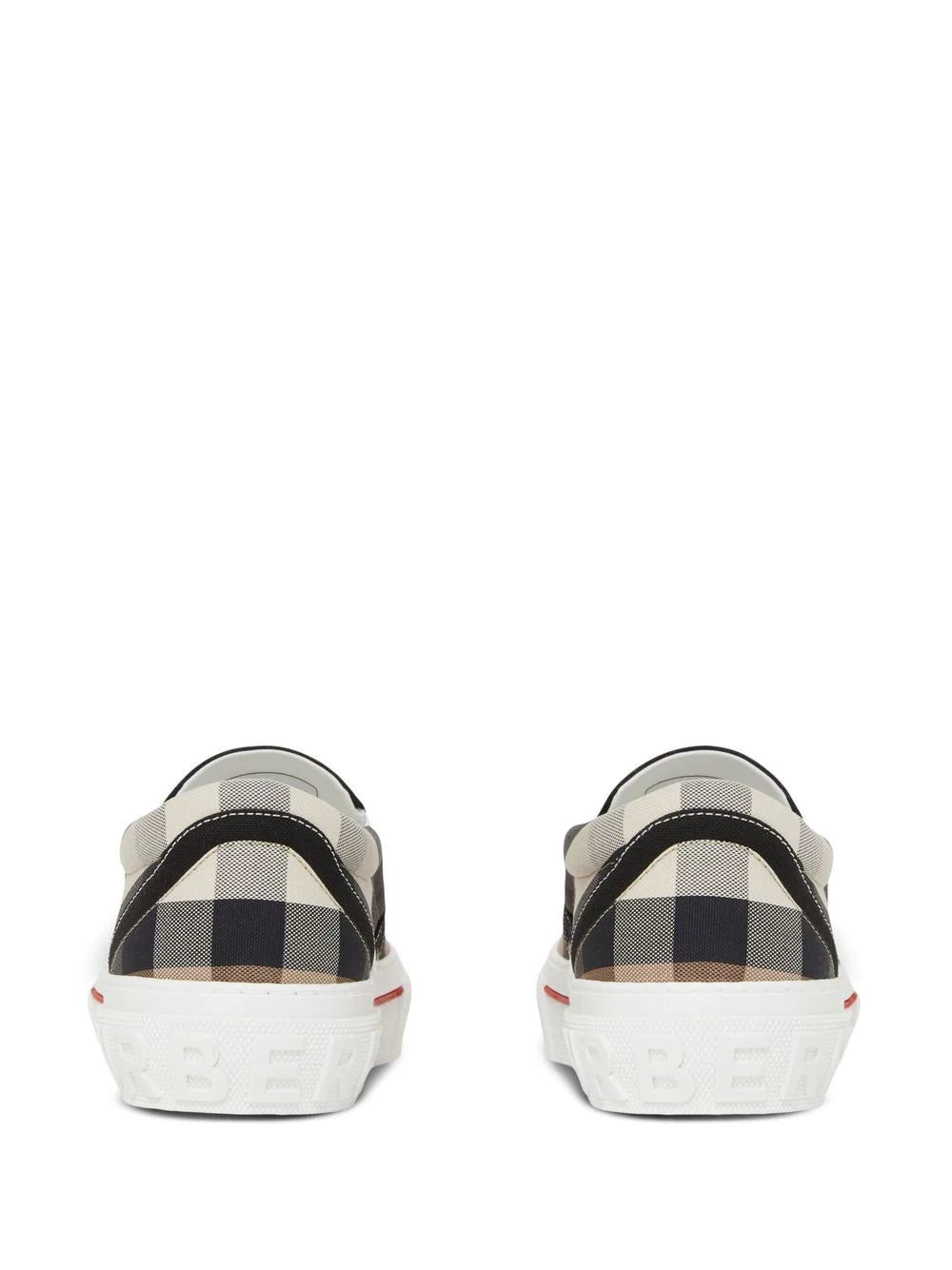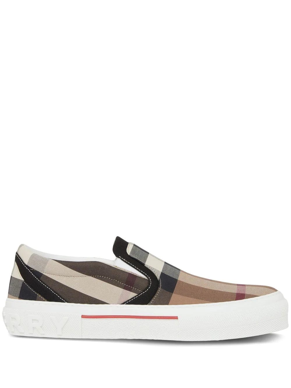 Burberry's slip-on sneakers spotlight the brand's archival checked pattern that debuted on the linings of the label's iconic trench coats. They rest on chunky rubber soles.
