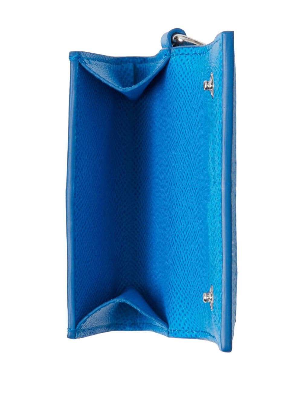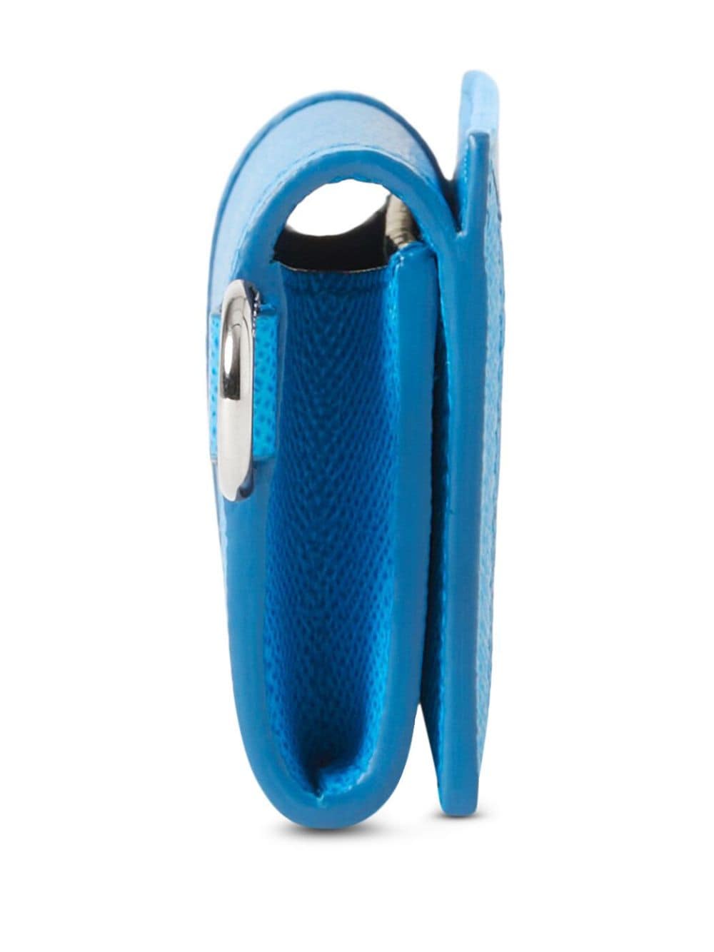 blue calf leather grained texture logo plaque foldover top with press-stud fastening wrist strap
