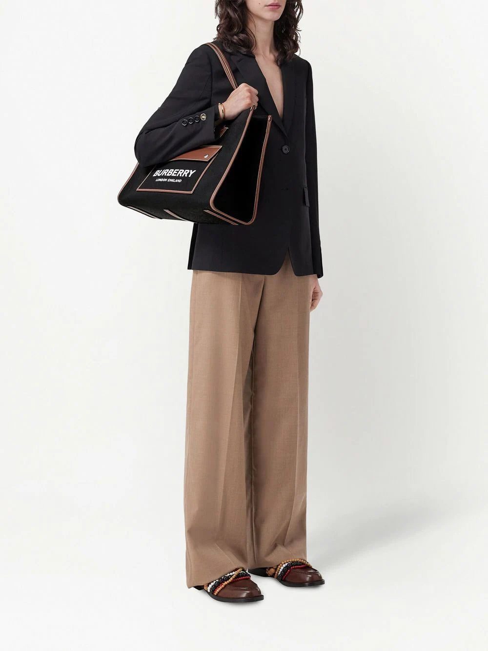 Tying in with contemporary branding trends, this tote bag from Burberry's AW22 collection features a large logo print across the front of the design in a contrasting colourway.