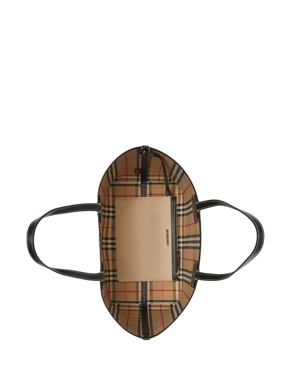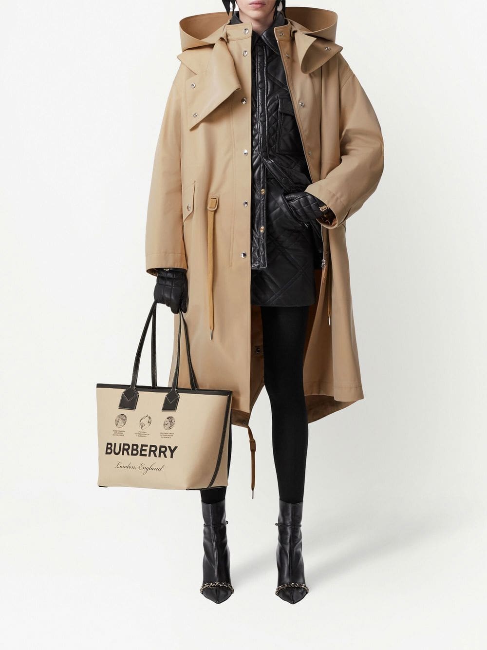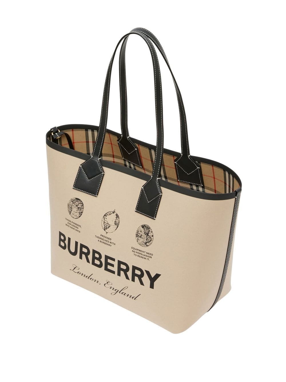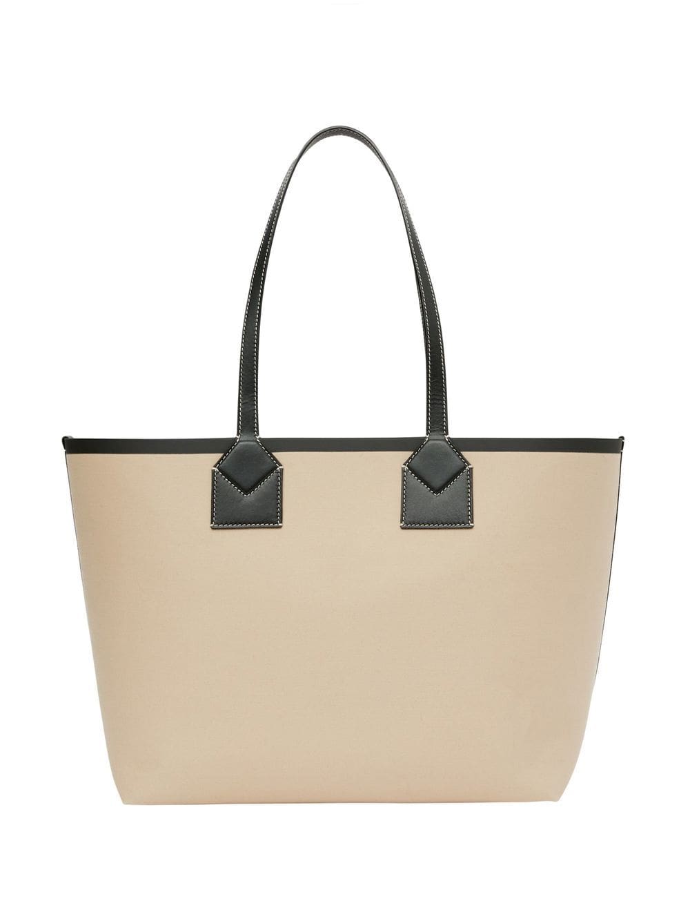 beige/black cotton-linen blend logo print to the front leather trim leather top handles main compartment removable pouch