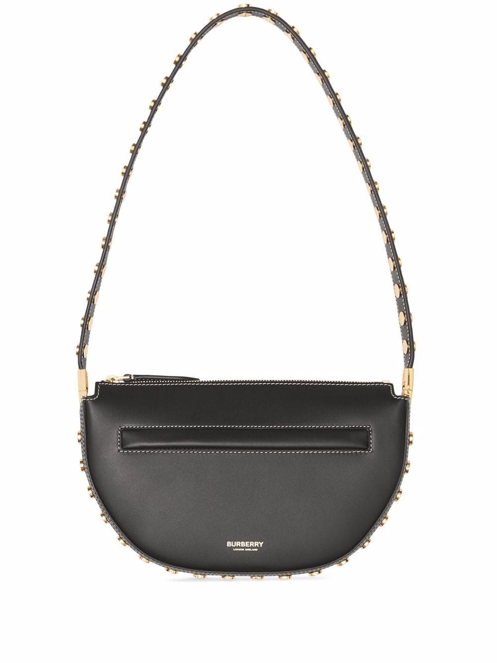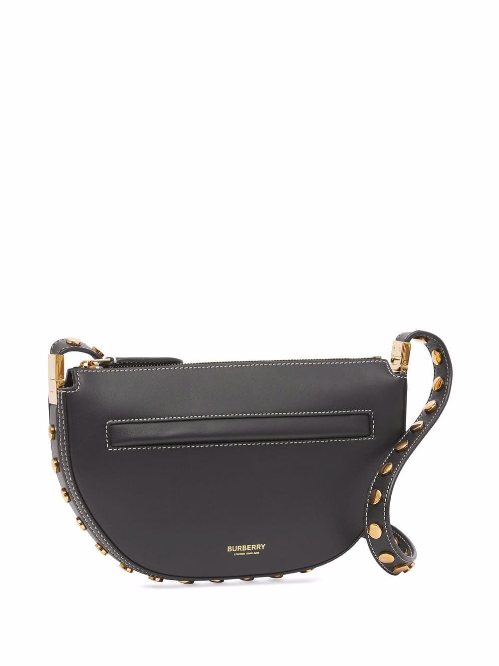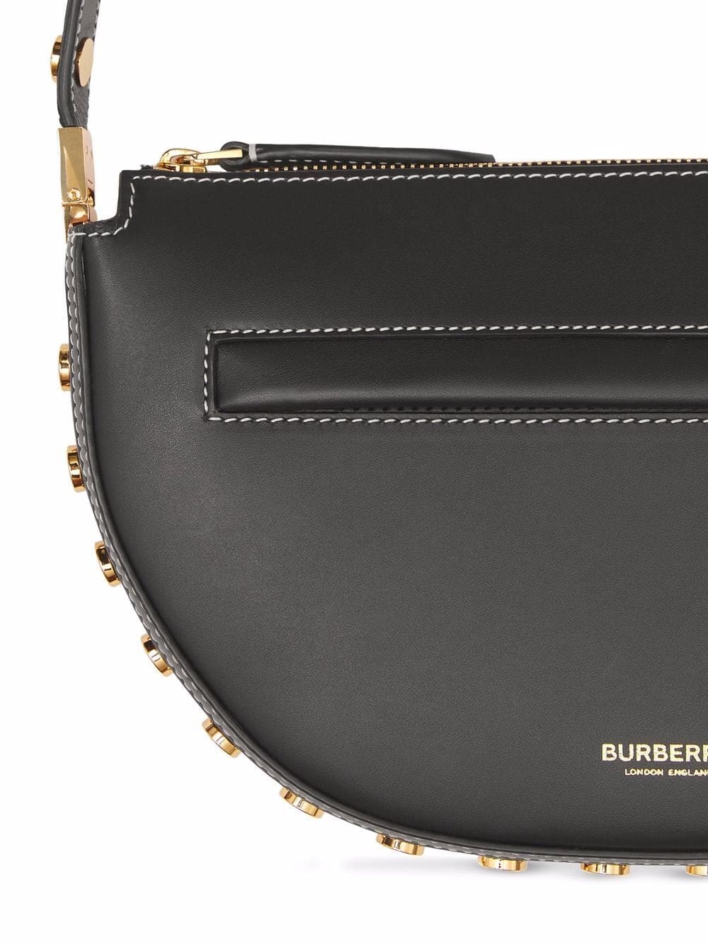 Inspiration can be found anywhere and Burberry looks to the Olympia in London to inform the curved shape of this shoulder bag. Made from smooth black leather, the practical style is detailed with opulent gold-tone hardware.