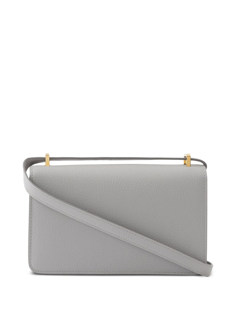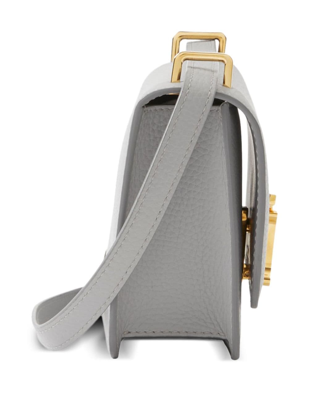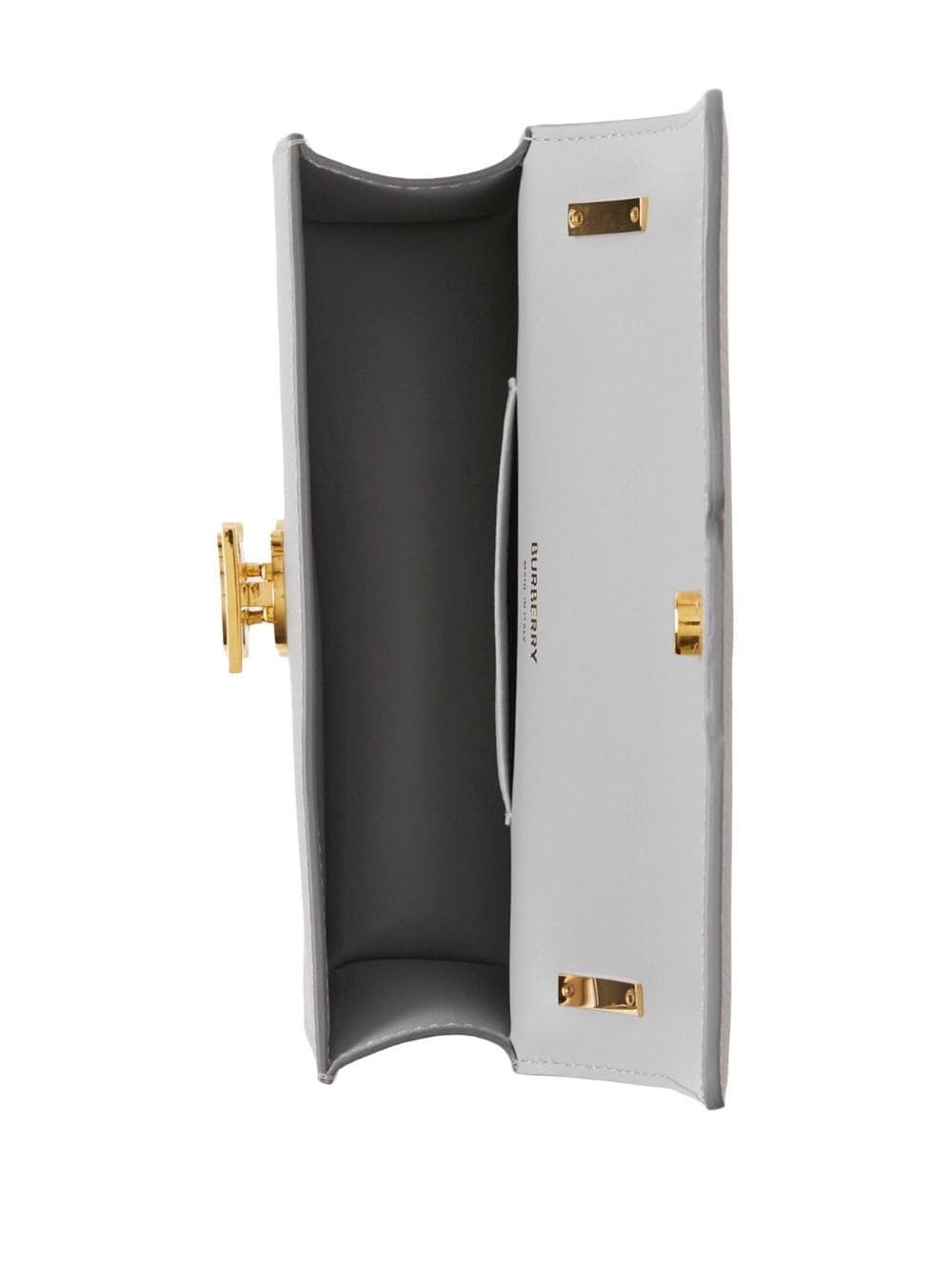 Presented in micro size, this Burberry's crossbody bag is crafted from grained leather in soft shade of grey. Boasting a structured silhouette, it benefits from a foldover top with the recognisable TB Monogram clasp at the front.