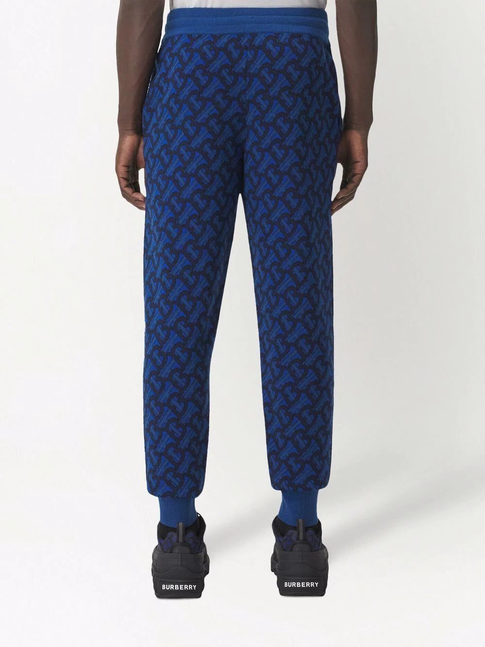 Burberry showcases the brand's monogram with interlocking initials of 'TB', introduced in 2018. Inspired by the house's archives and referencing the brand's founder, Thomas Burberry, the design is featured in a contemporary way on this pair of track pants as an all-over pattern.