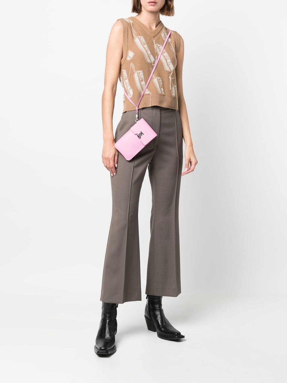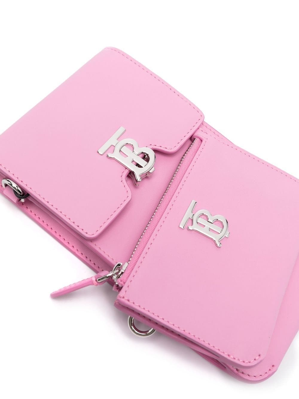 Burberry's iconic TB monogram details the front of this crossbody bag from the brand's SS22 collection. Crafted in pink leather, the slimline design boasts a detachable matching cardholder.