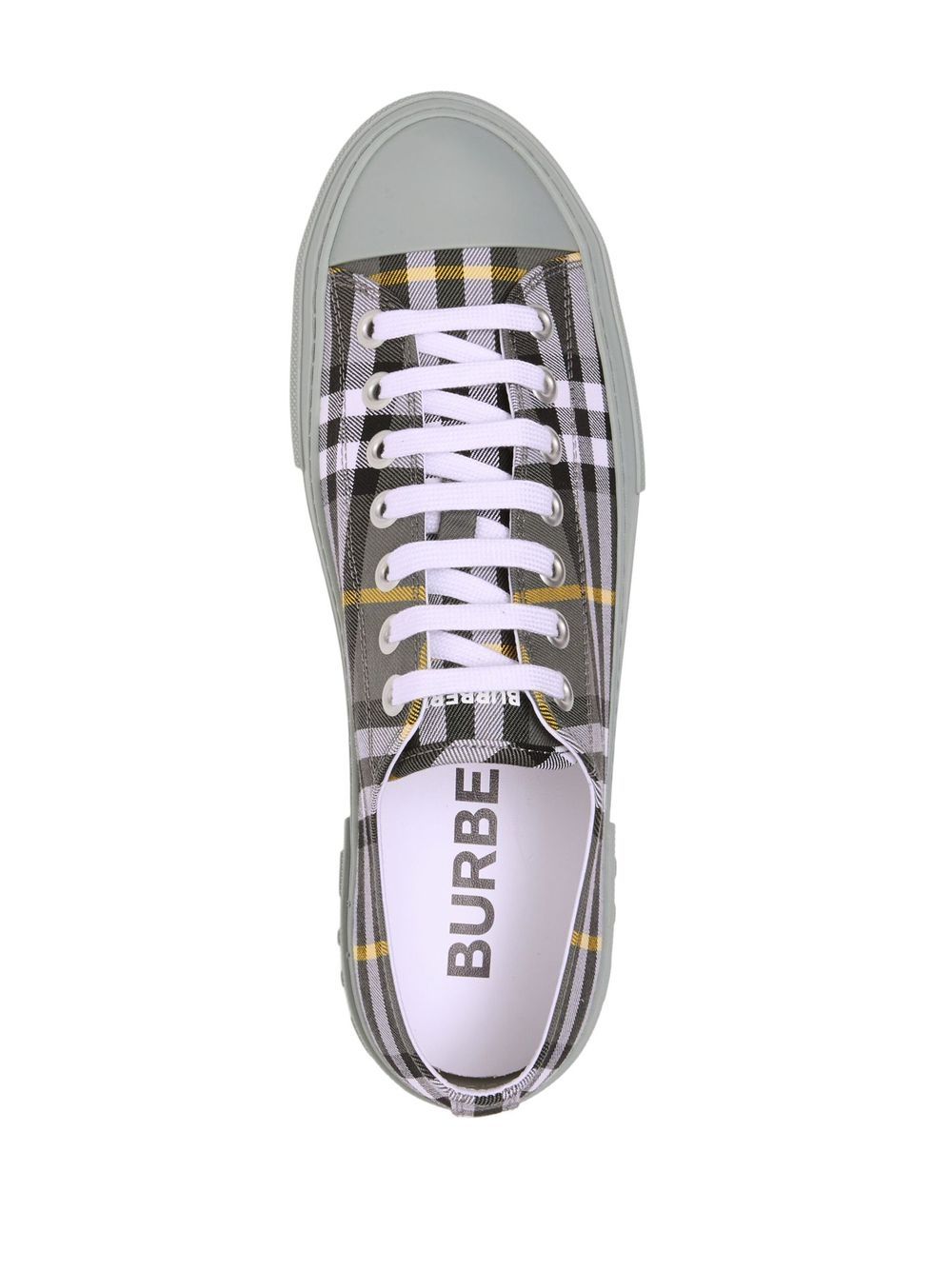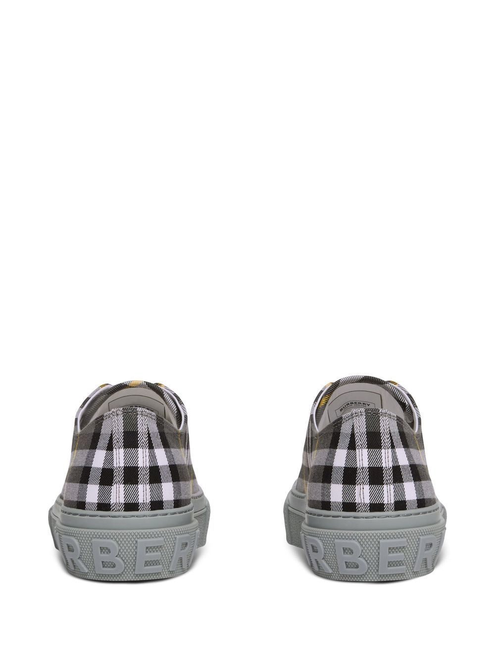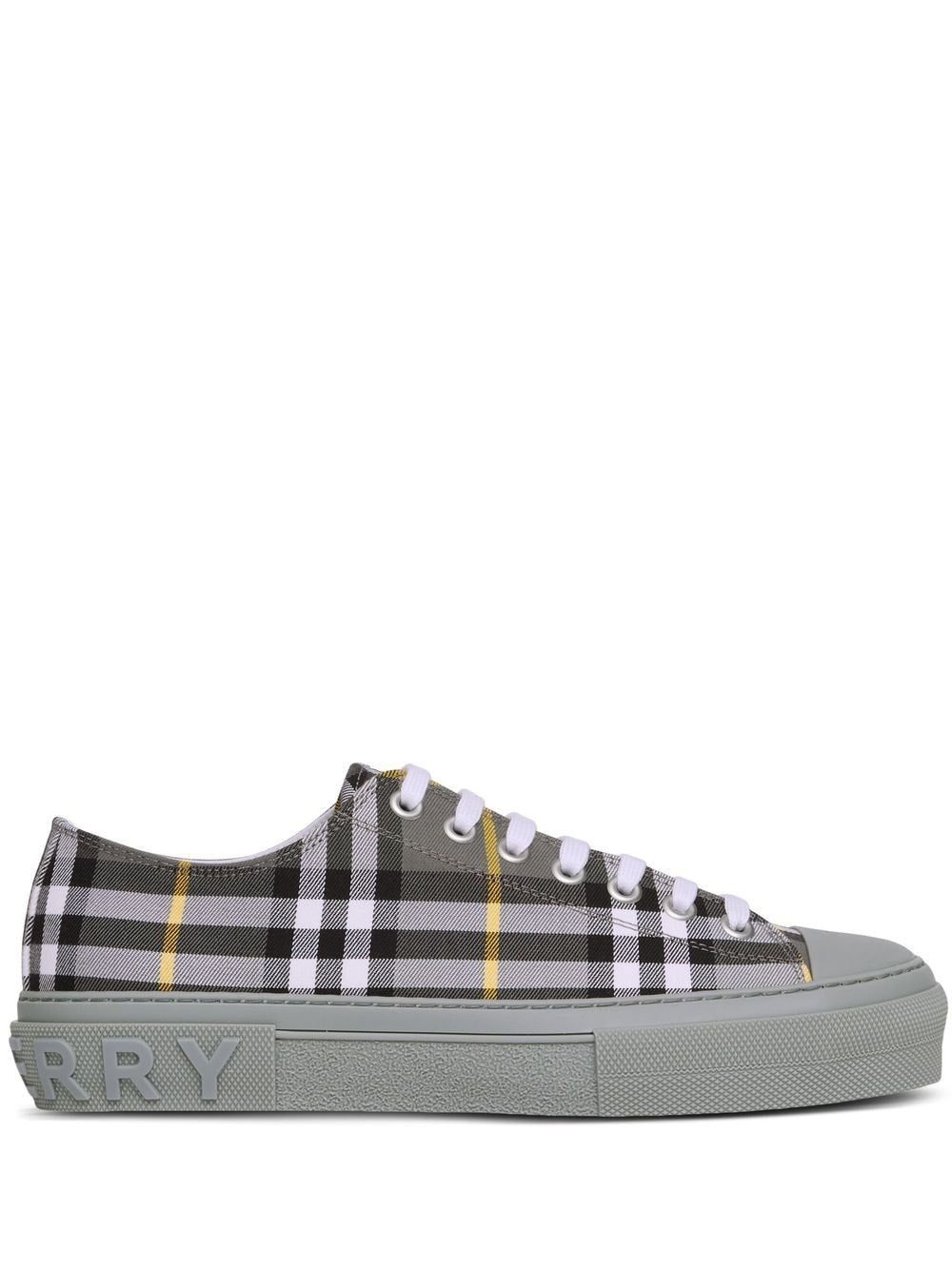 Burberry uses innovative accents to modernise traditional styles. A perfect illustration are these low-top sneakers, which feature the house's signature Vintage Check print in an alternative grey colour palette.