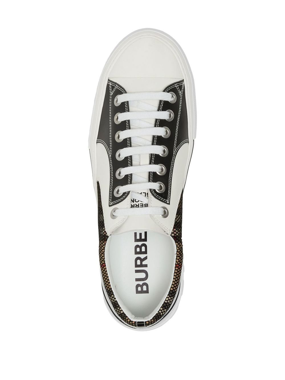 white/multicolour cotton/calf leather Vintage Check pattern colour-block panelled design mesh detailing round toe front lace-up fastening logo patch at the tongue contrast stitching branded insole flat rubber sole