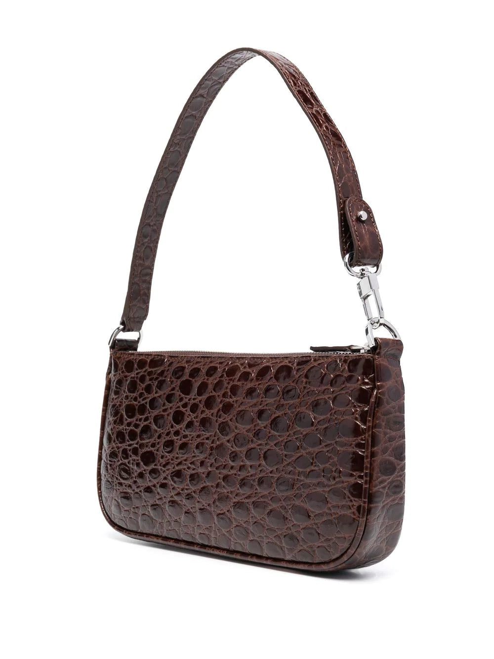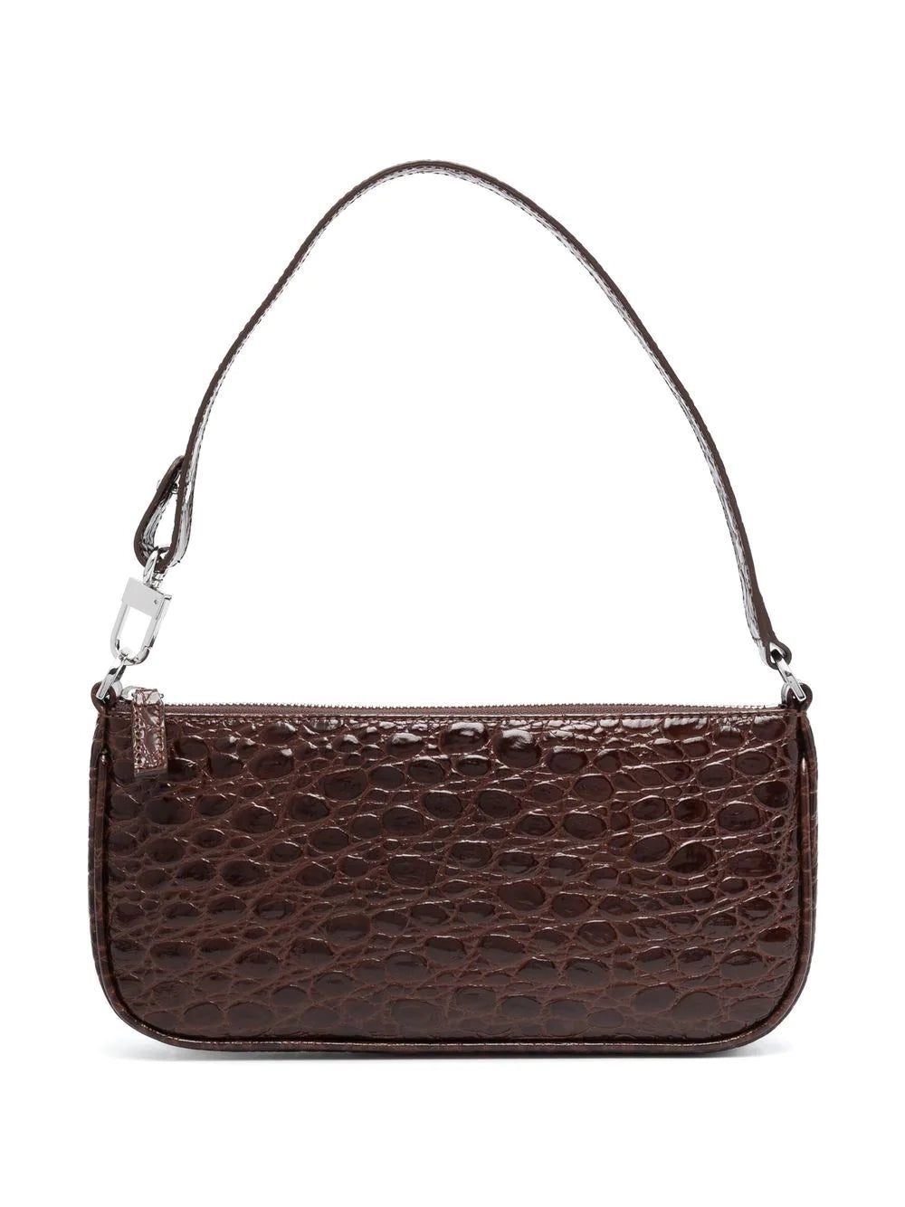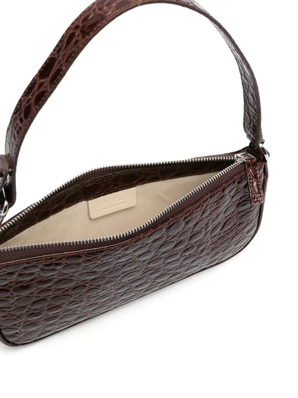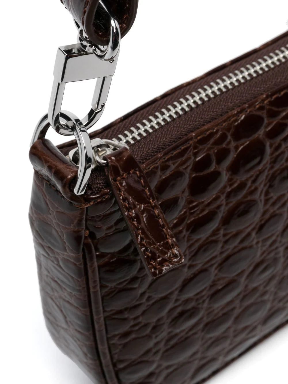 crocodile-effect bag from BY FAR featuring walnut brown, calf leather, embossed crocodile effect, silver-tone hardware, top zip fastening and adjustable shoulder strap.