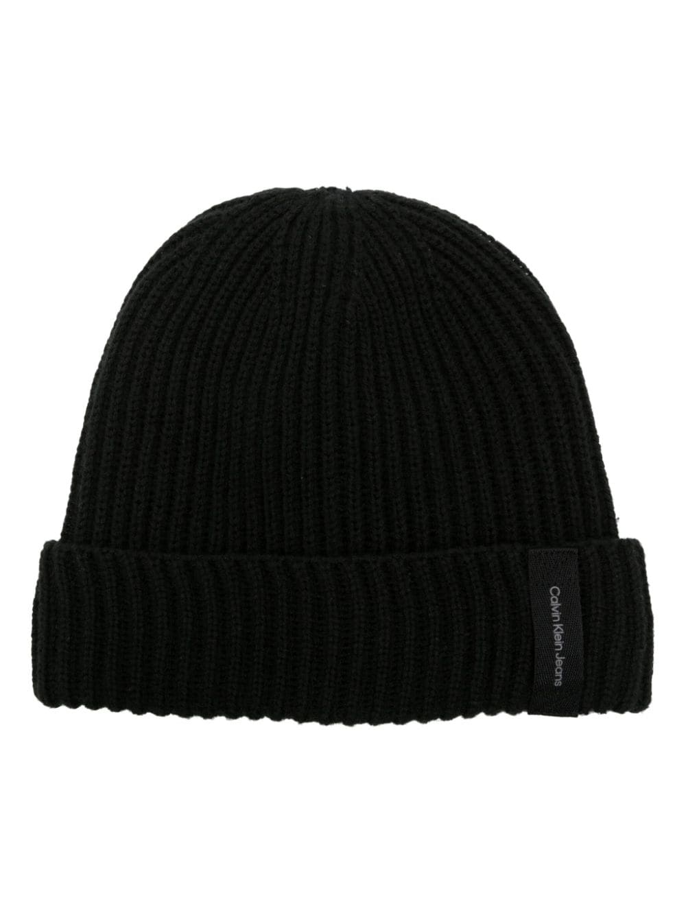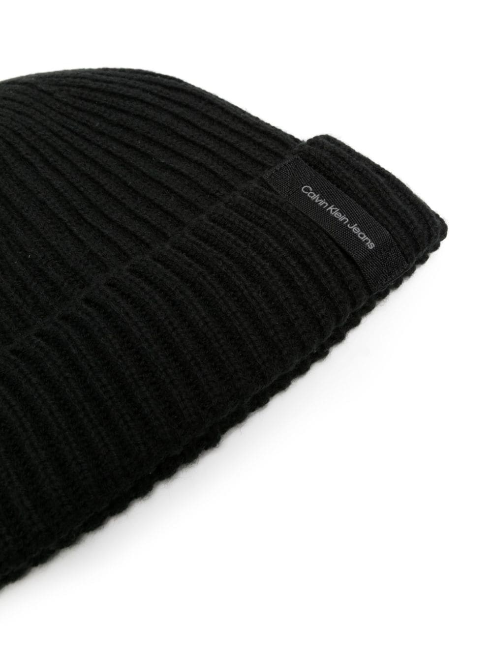Calvin Klein Jeans logo-patch ribbed-knit beanie
