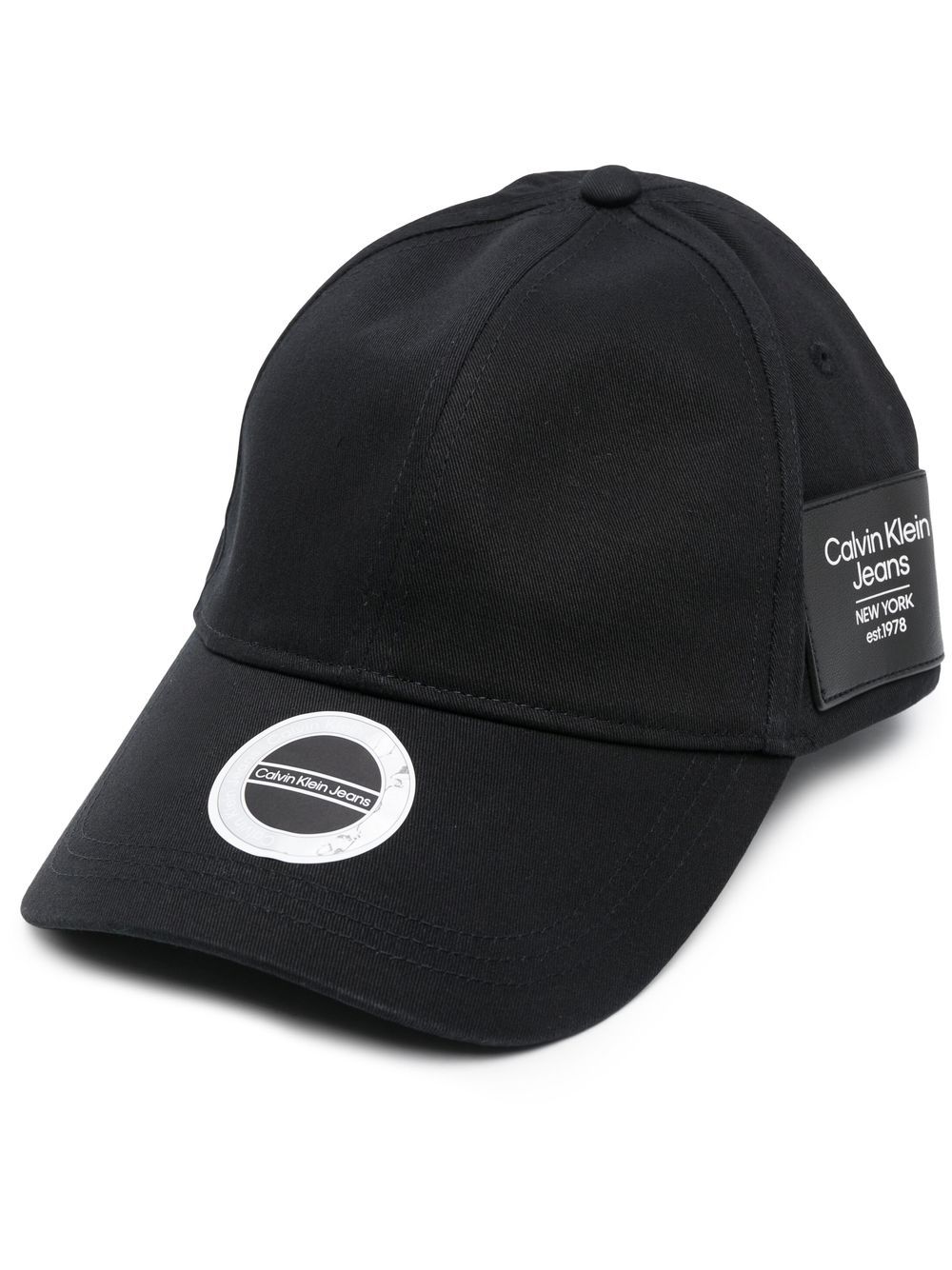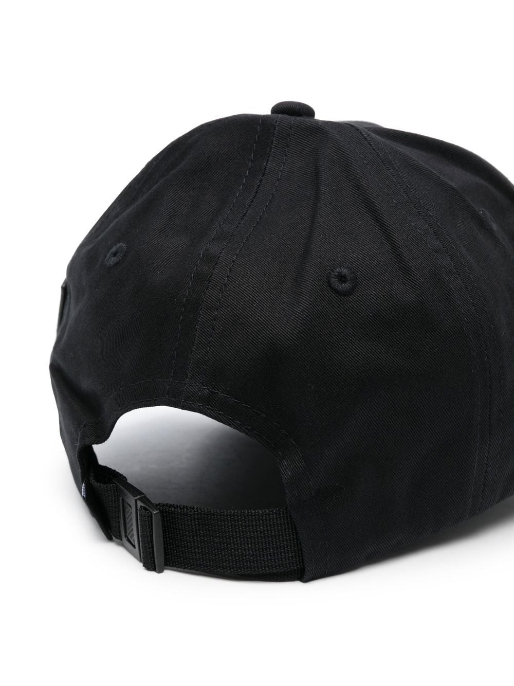 black organic cotton twill weave six-panel construction curved peak logo patch to the side adjustable strap to the rear