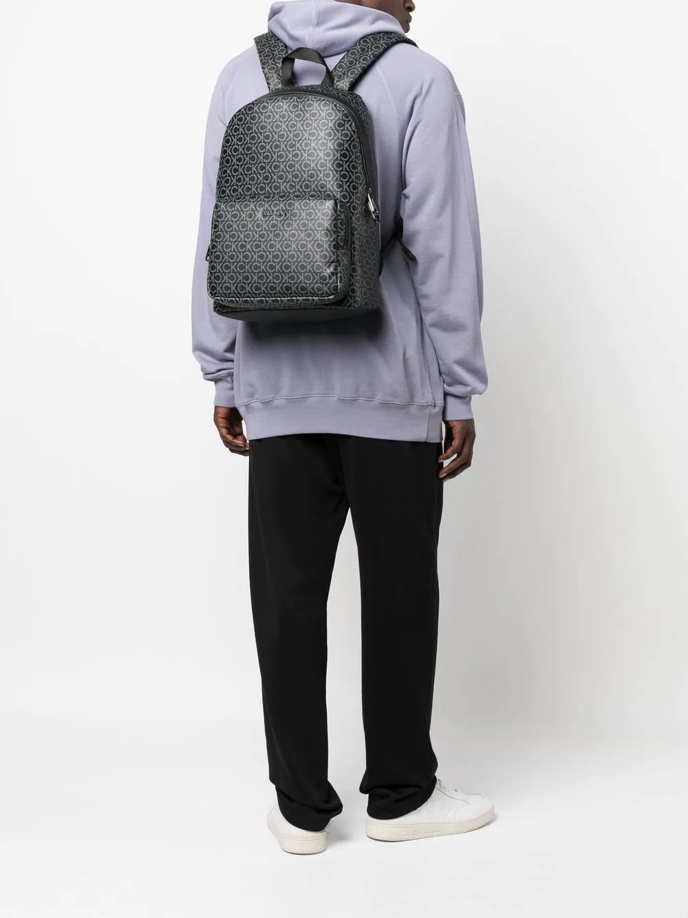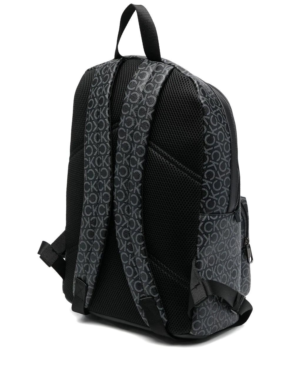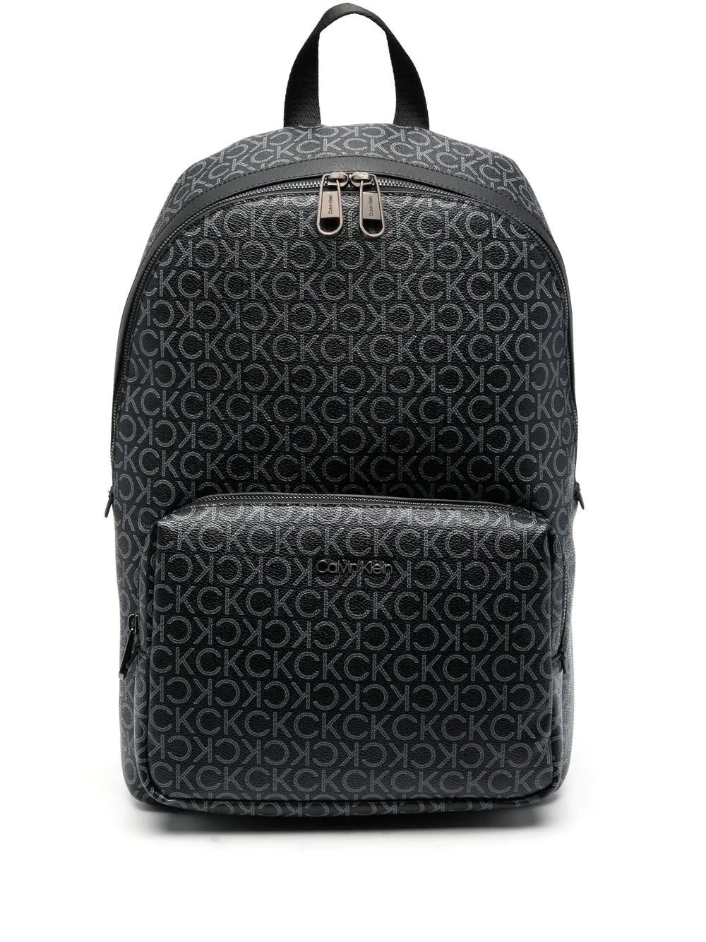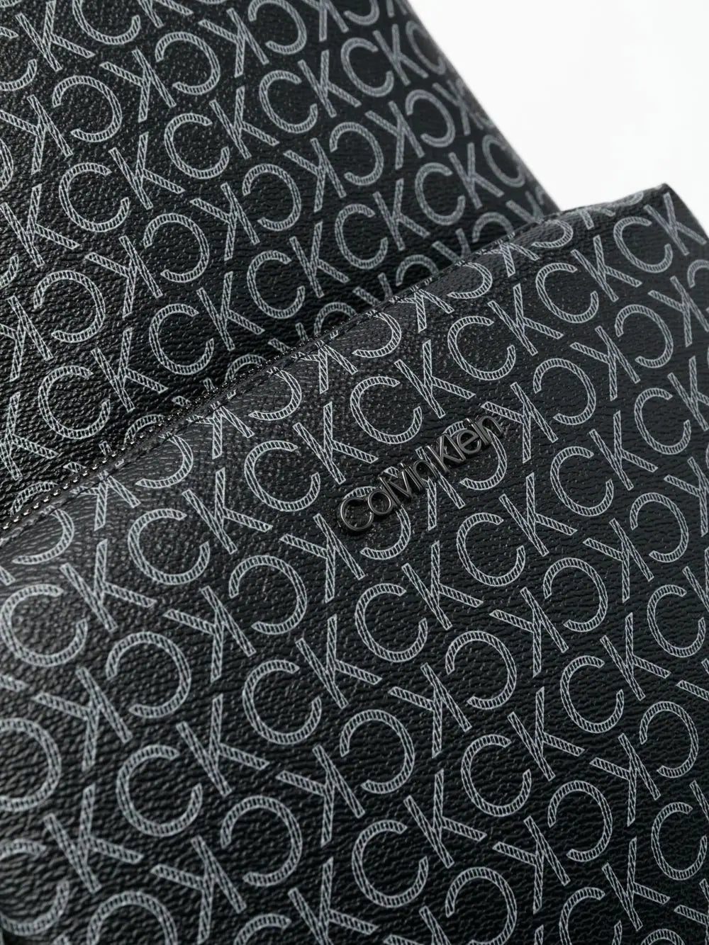 Must monogram-pattern tote bag from CALVIN KLEIN featuring black/grey, recycled polyester blend, monogram pattern, silver-tone logo lettering, silver-tone hardware, main compartment, front zip-fastening compartment, top zip fastening, single top handle and adjustable shoulder straps. POSITIVELY CONSCIOUS: This Planet Conscious product is crafted from certified recycled or upcycled materials, which helps you make a better choice for the environment as they generate less energy, save water and reduce the need for new raw materials. For recycled synthetic clothing products we highly recommend using a microfibre-catching washing bag to ensure that no microplastics that can pollute water are released in the process..