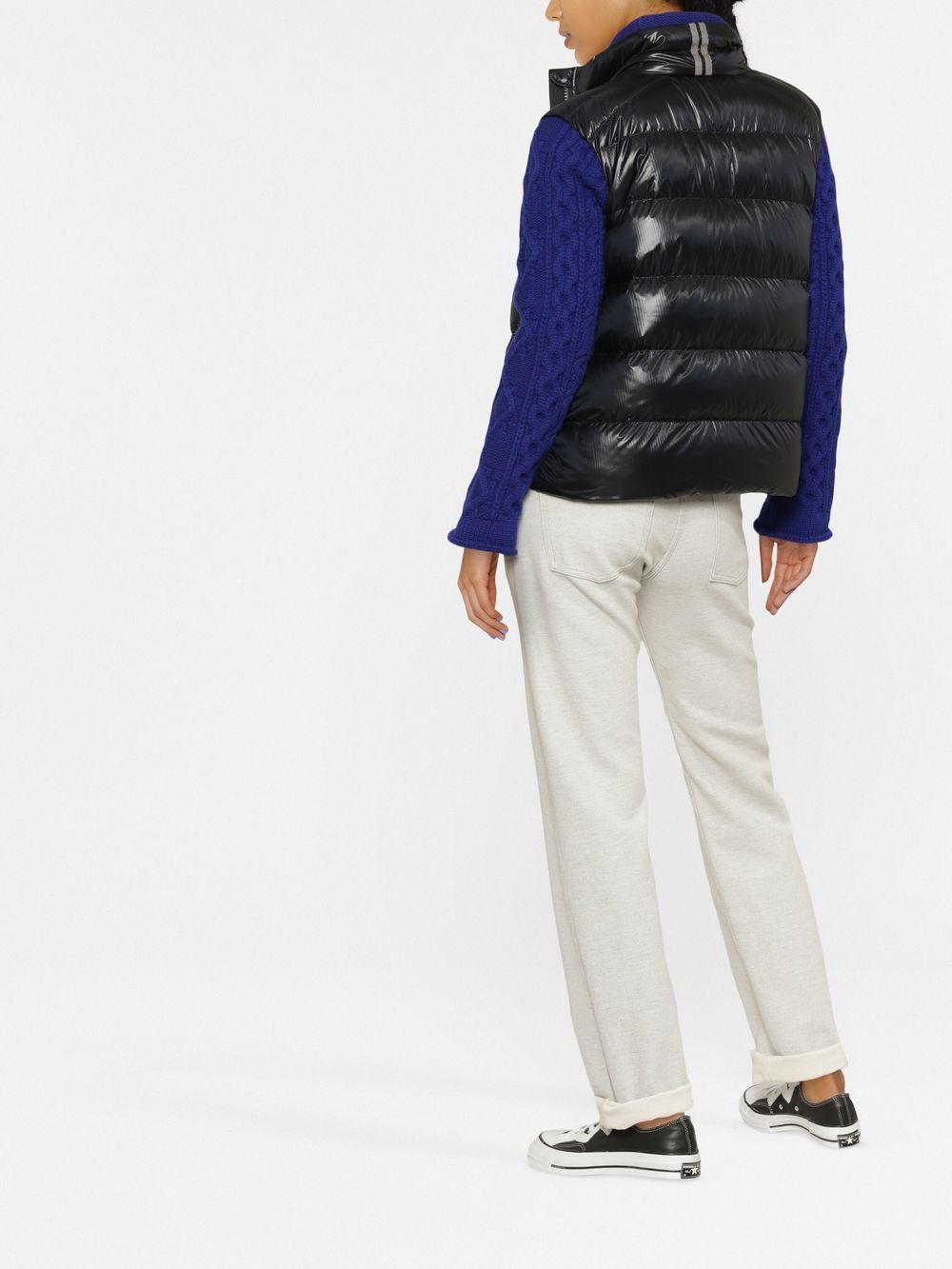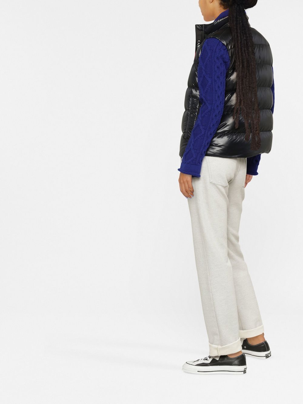 Filled with insulating duck feathers, the Cypress padded gilet by Canada Goose showcases a black design. The North Pole emblem sits at the chest, representing the brand's continuous leading position in the production of resilient winterwear.