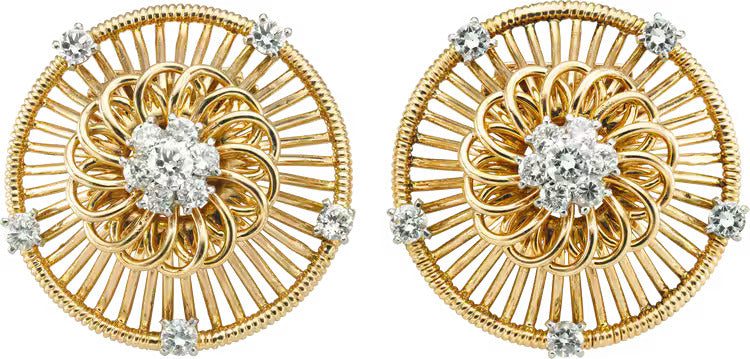 Clip brooches - yellow gold, platinum 950/1000, Rose gold, diamonds. Cartier Paris, 1948.