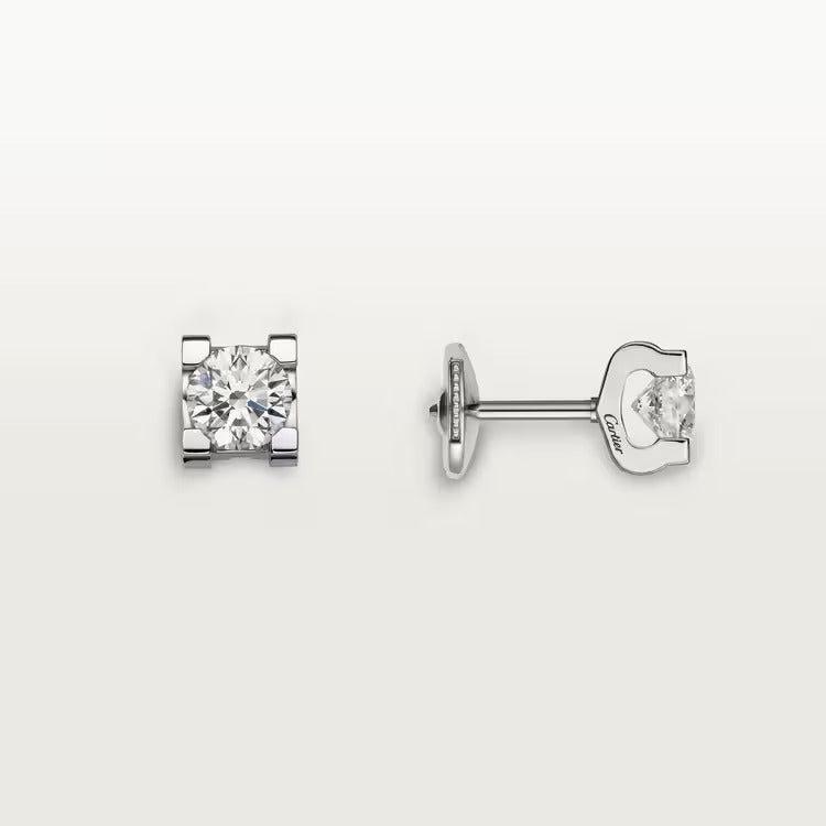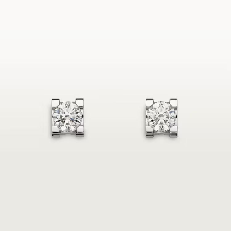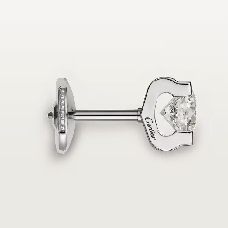C de Cartier earrings, 18K white gold, each set with a brilliant-cut diamond available in 0.18 to 0.29 carat, 0.50 to 0.69 carat and 1.00 to 1.99 carat.