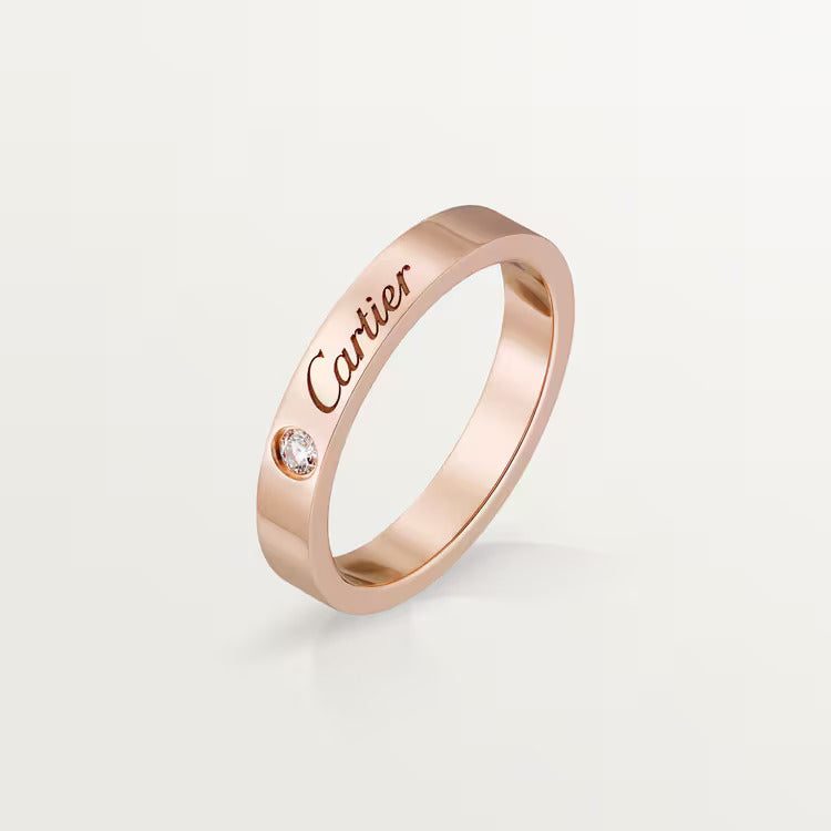 C de Cartier wedding band, width 3 mm, rose gold (750/1000), set with a brilliant-cut diamond of 0.03 carat (for size 52).
