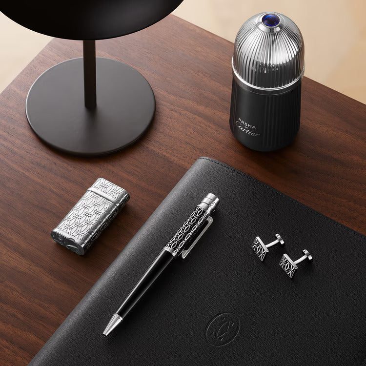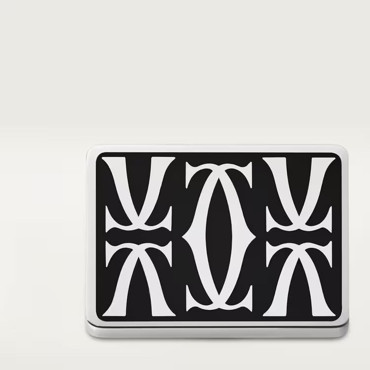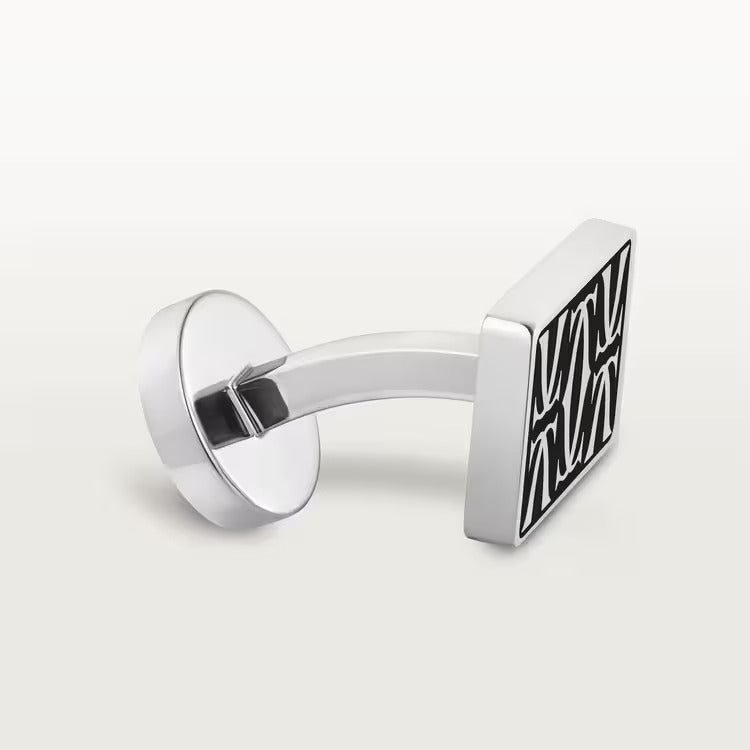 Double C de Cartier sterling silver 925/1000 palladium-finish cufflinks, black lacquer. Head dimensions: 13 x 15 mm.